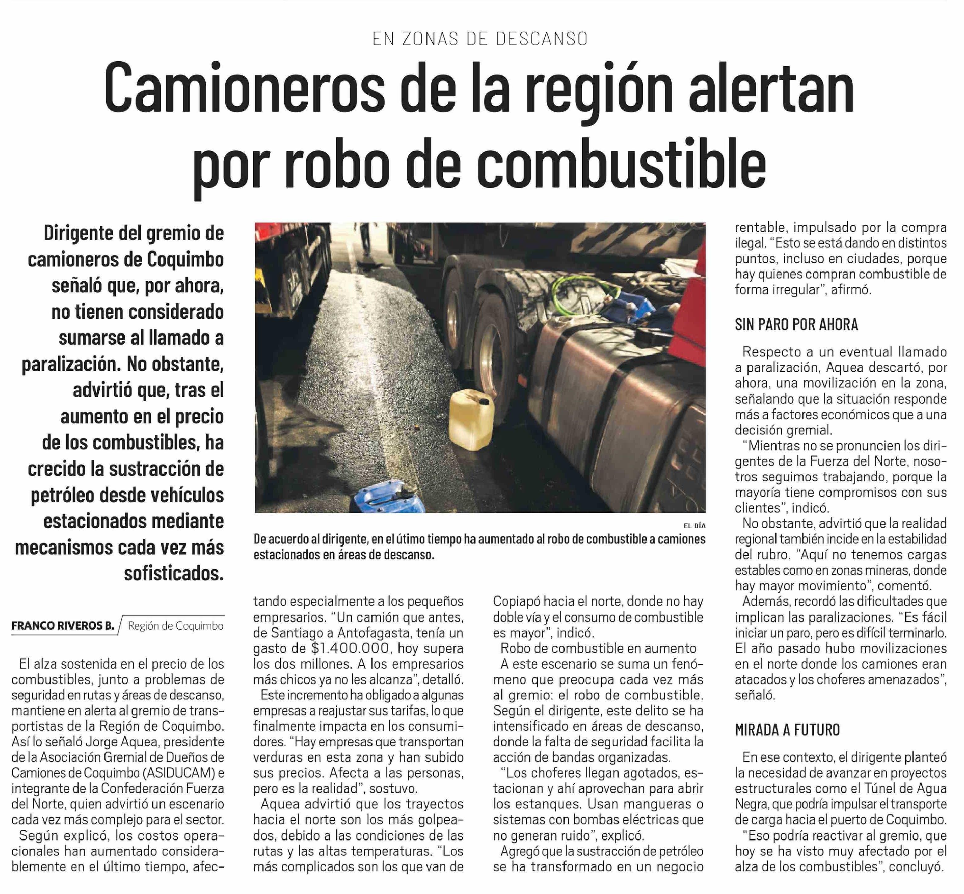 | Título: | Camioneros de la región alertan por robo de combustible |