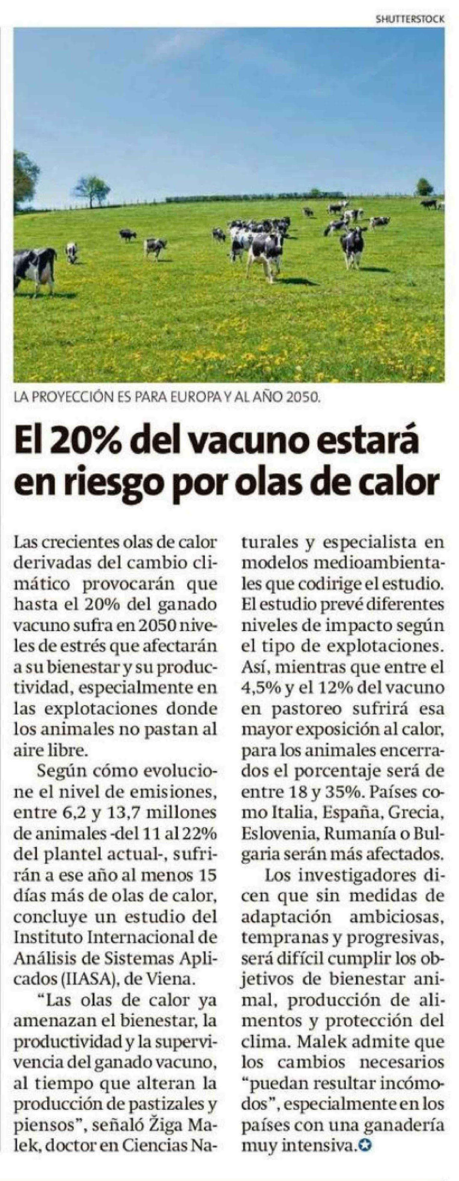 | Título: | El 20% del vacuno estará en riesgo por olas de calor |