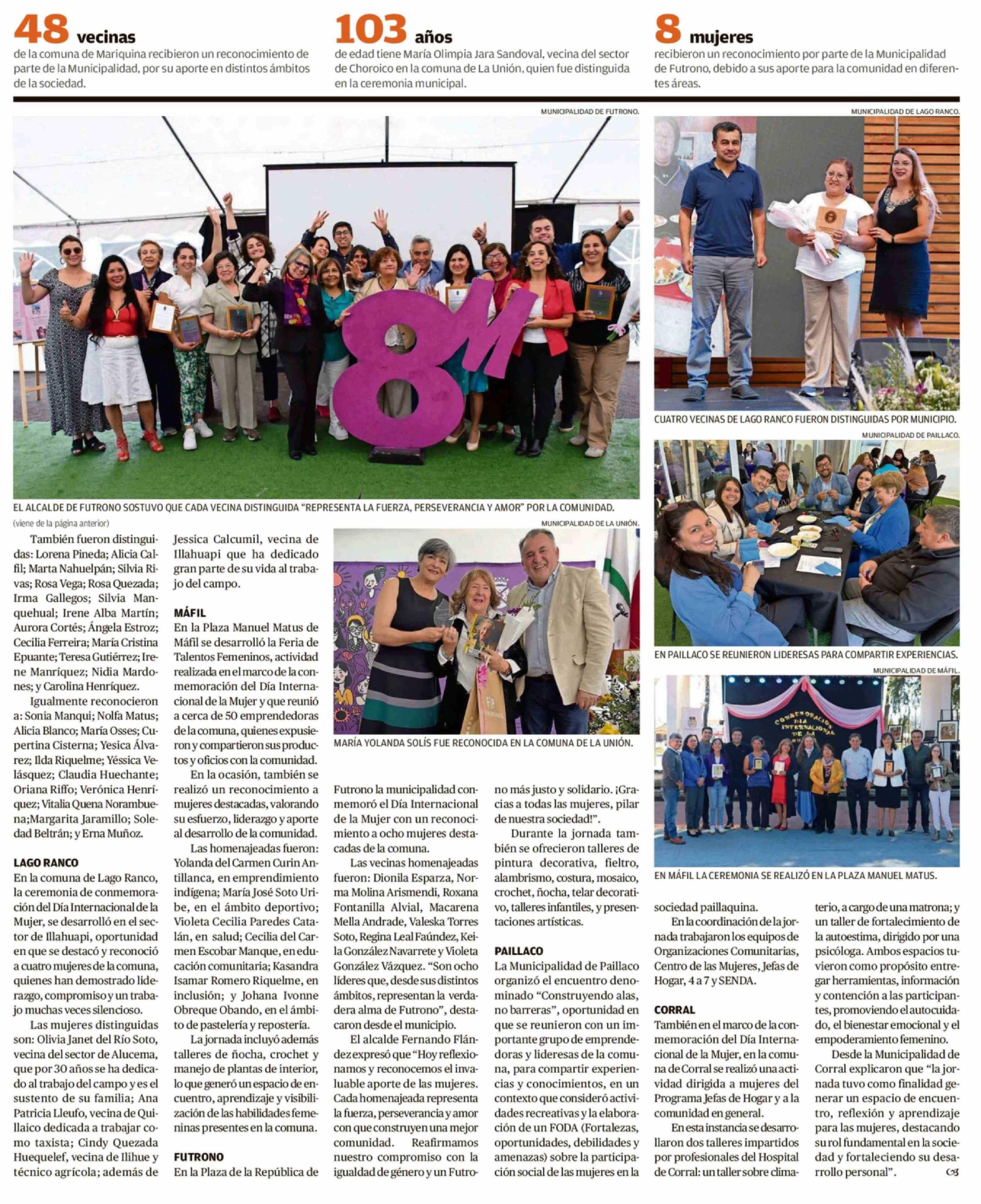 Título: Comunas de Los Ríos premiaron a mujeres por su labor ciudadana
