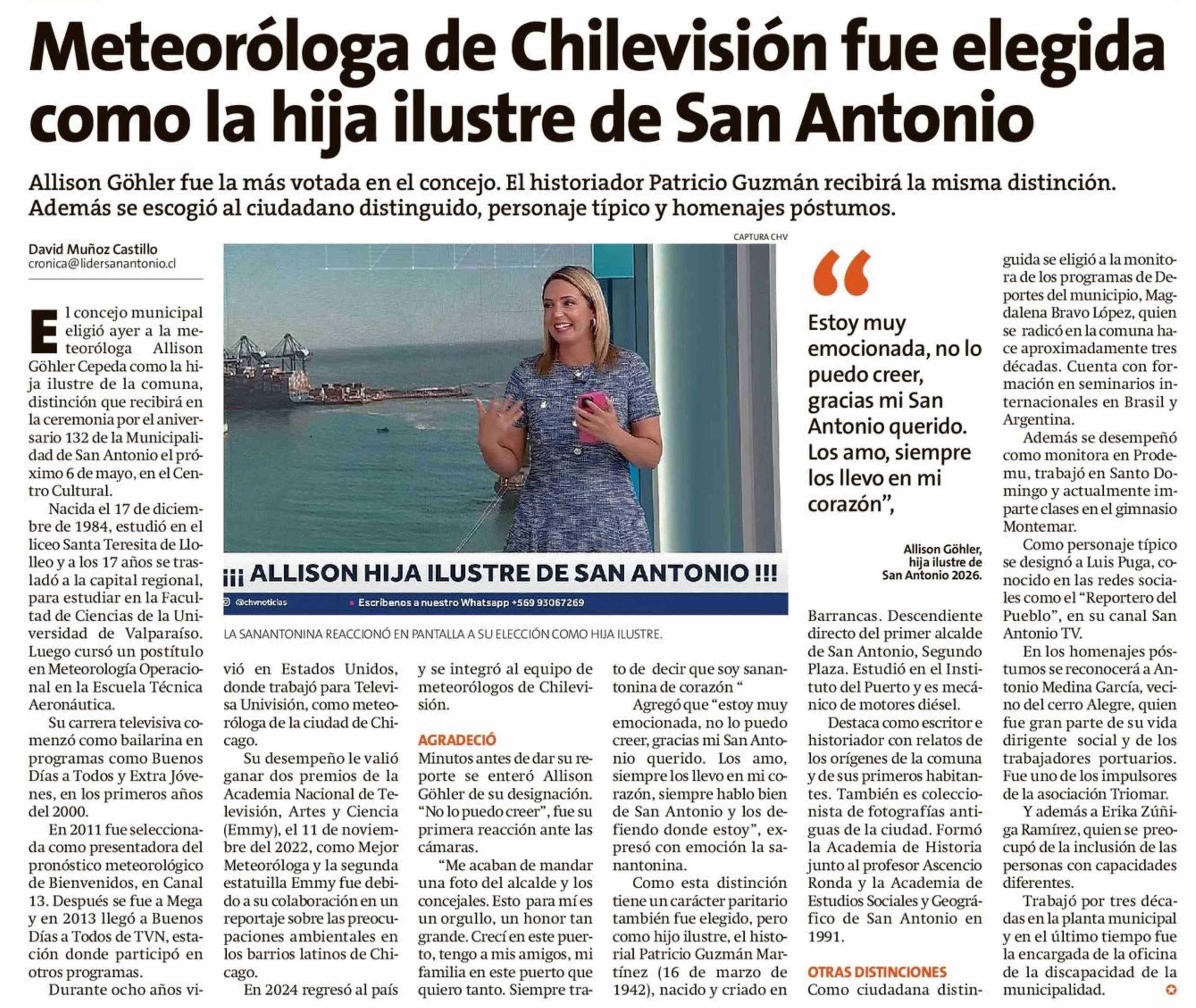 Título: Meteoróloga de Chilevisión fue elegida como la hija ilustre de San Antonio