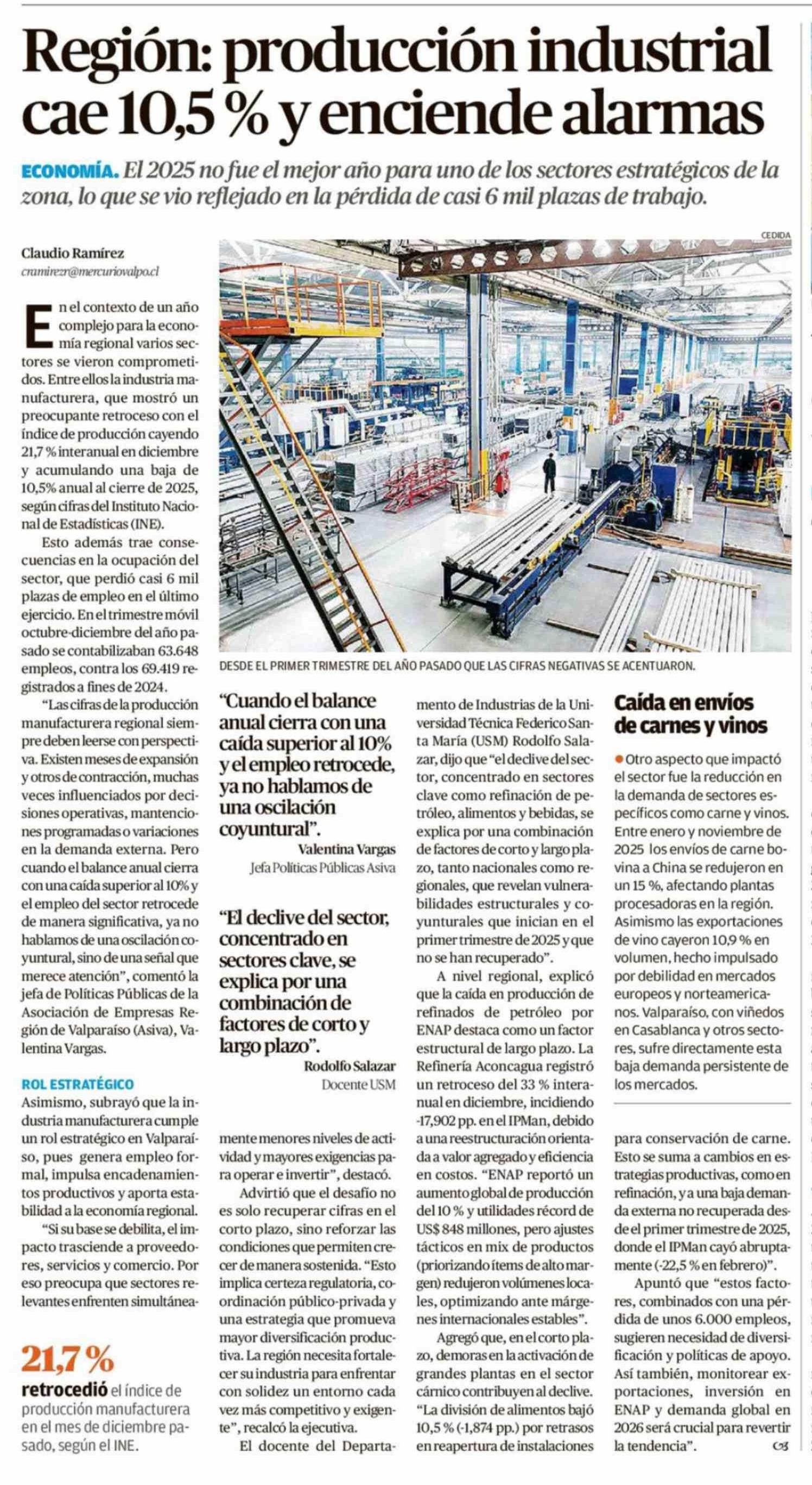 Título: Región: producción industrial cae 10,5 % y enciende alarmas