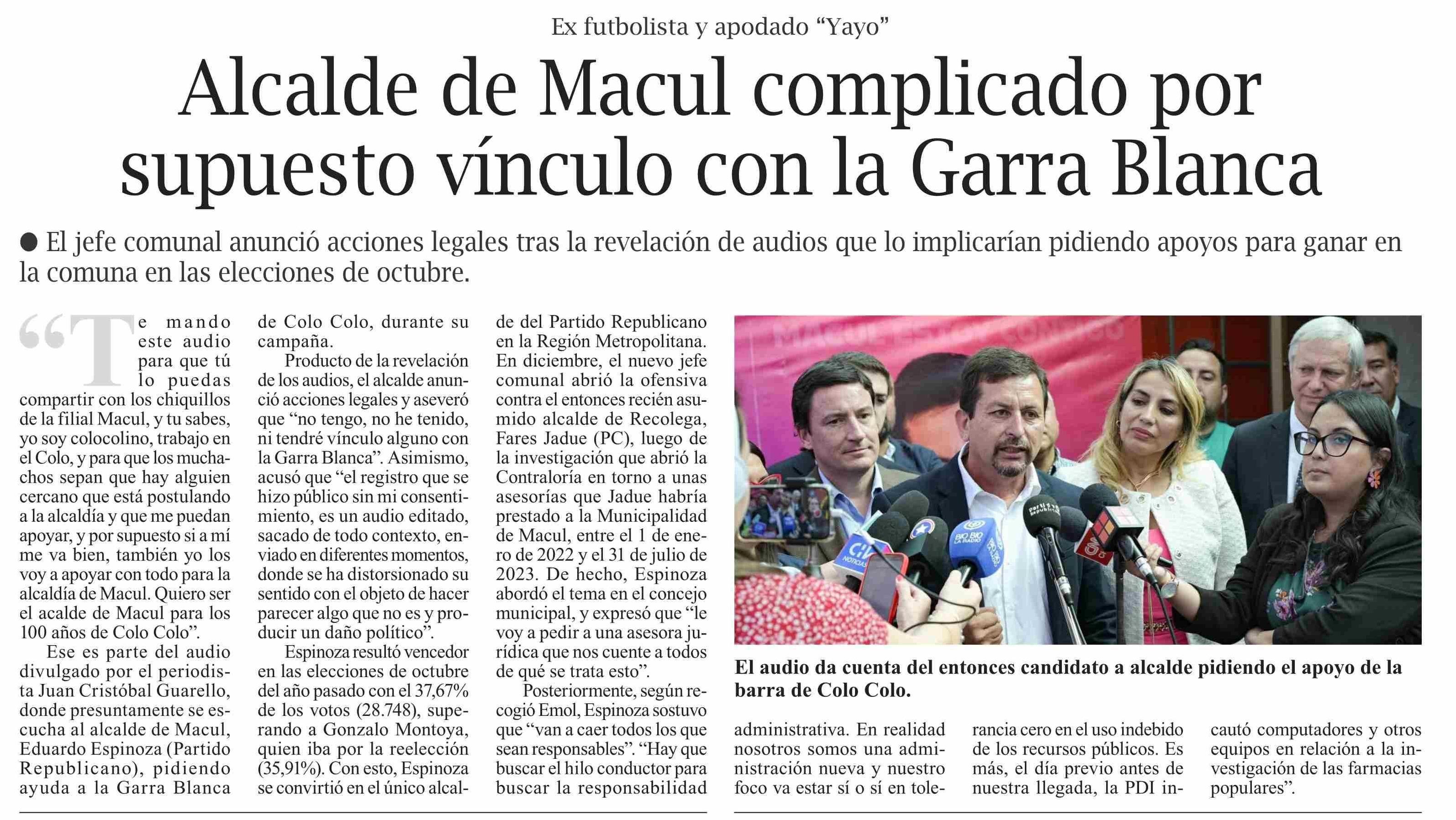 | Título: | Alcalde de Macul complicado por supuesto vínculo con la Garra Blanca |