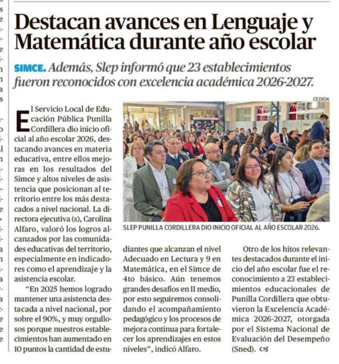 Destacan avances en Lenguaje y Matemática durante año escolar 17-03-2026 Crónica de Chillán |