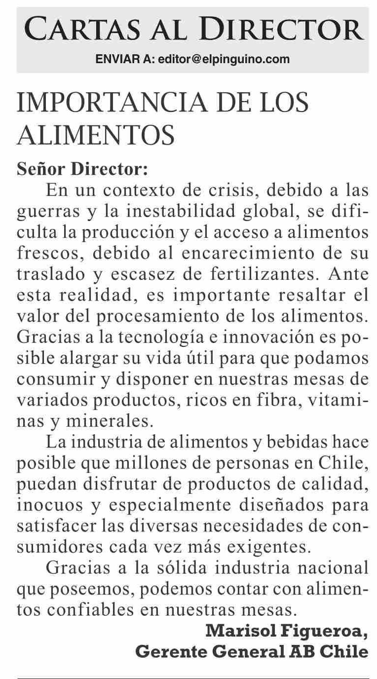 Cartas: ImportancIa De los alImentos 08-04-2026 El Pingüino |
