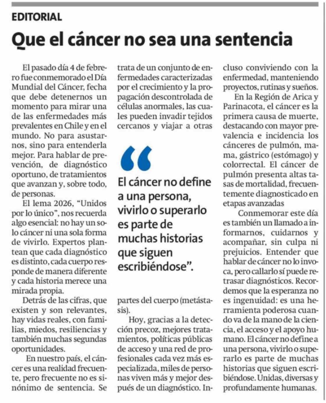 Editorial: Que el cáncer no sea una sentencia 12-02-2026 La Estrella de Arica |