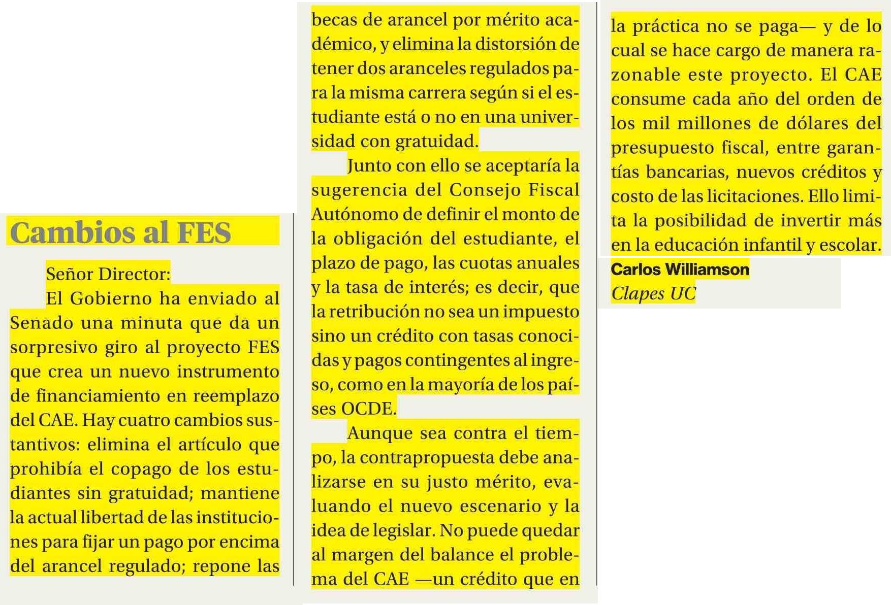 Título: Cartas: cambios al FES