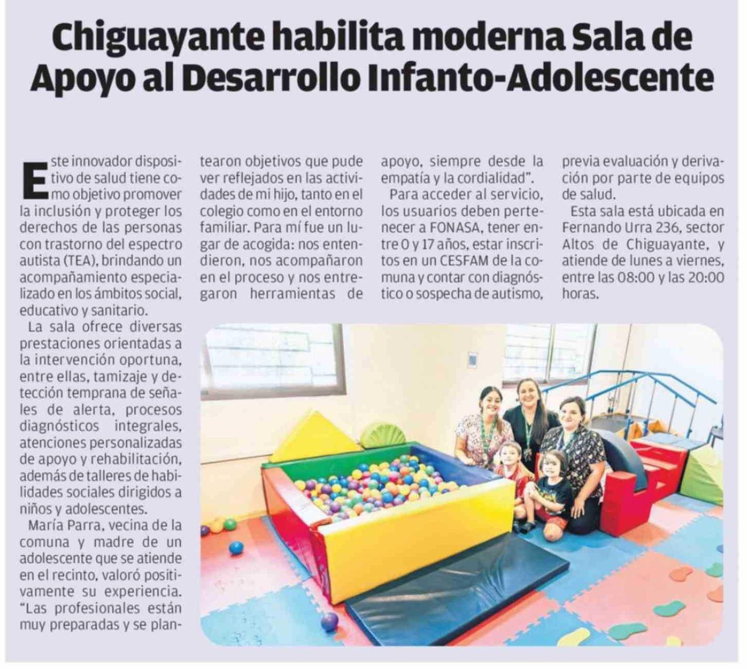 Título: Chiguayante habilita moderna Sala de Apoyo al Desarrollo Infanto-Adolescente