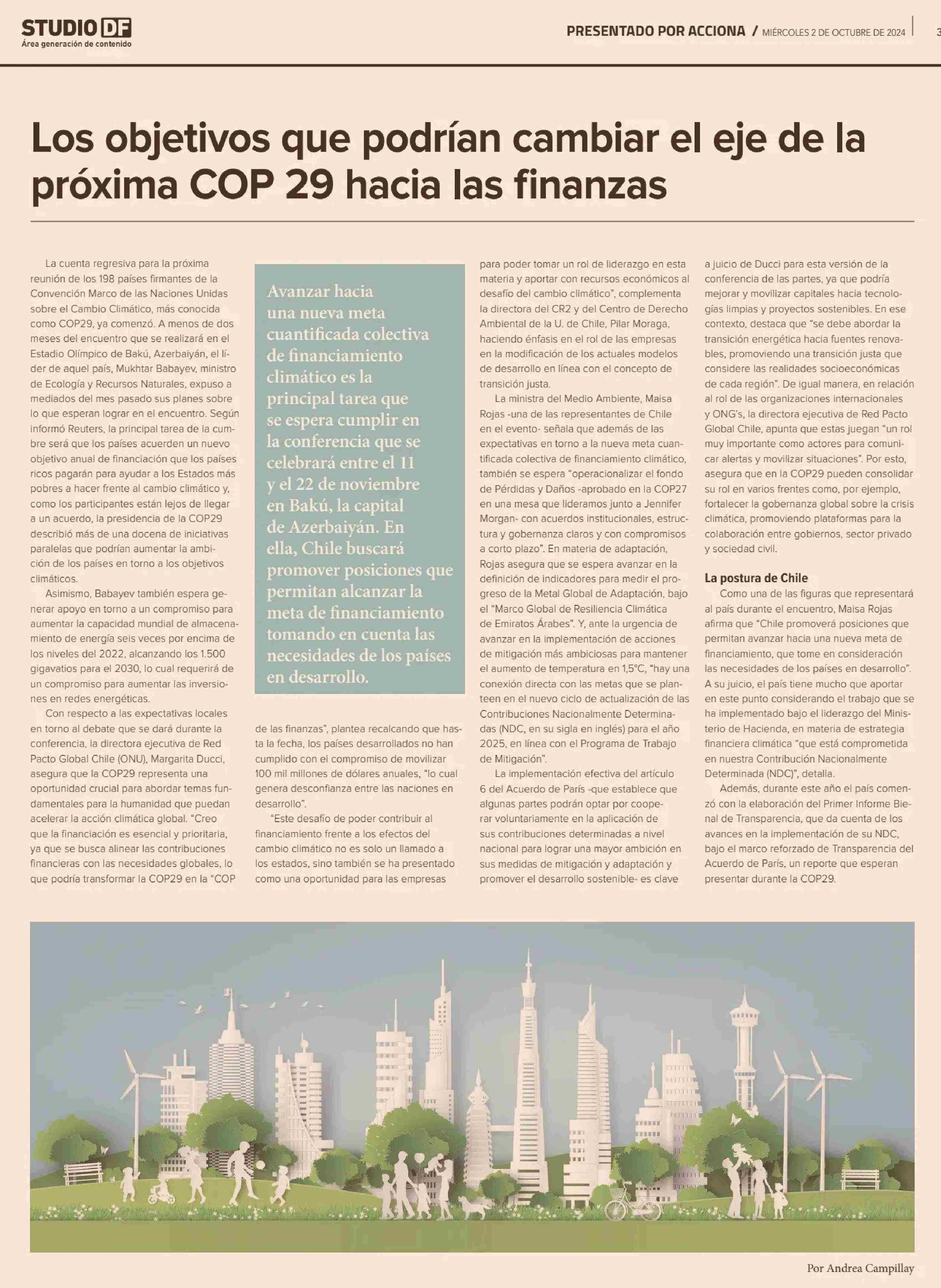 Los objetivos que podrían cambiar el eje de la próxima COP 29 hacia las finanzas 02-10-2024 Diario Financiero |