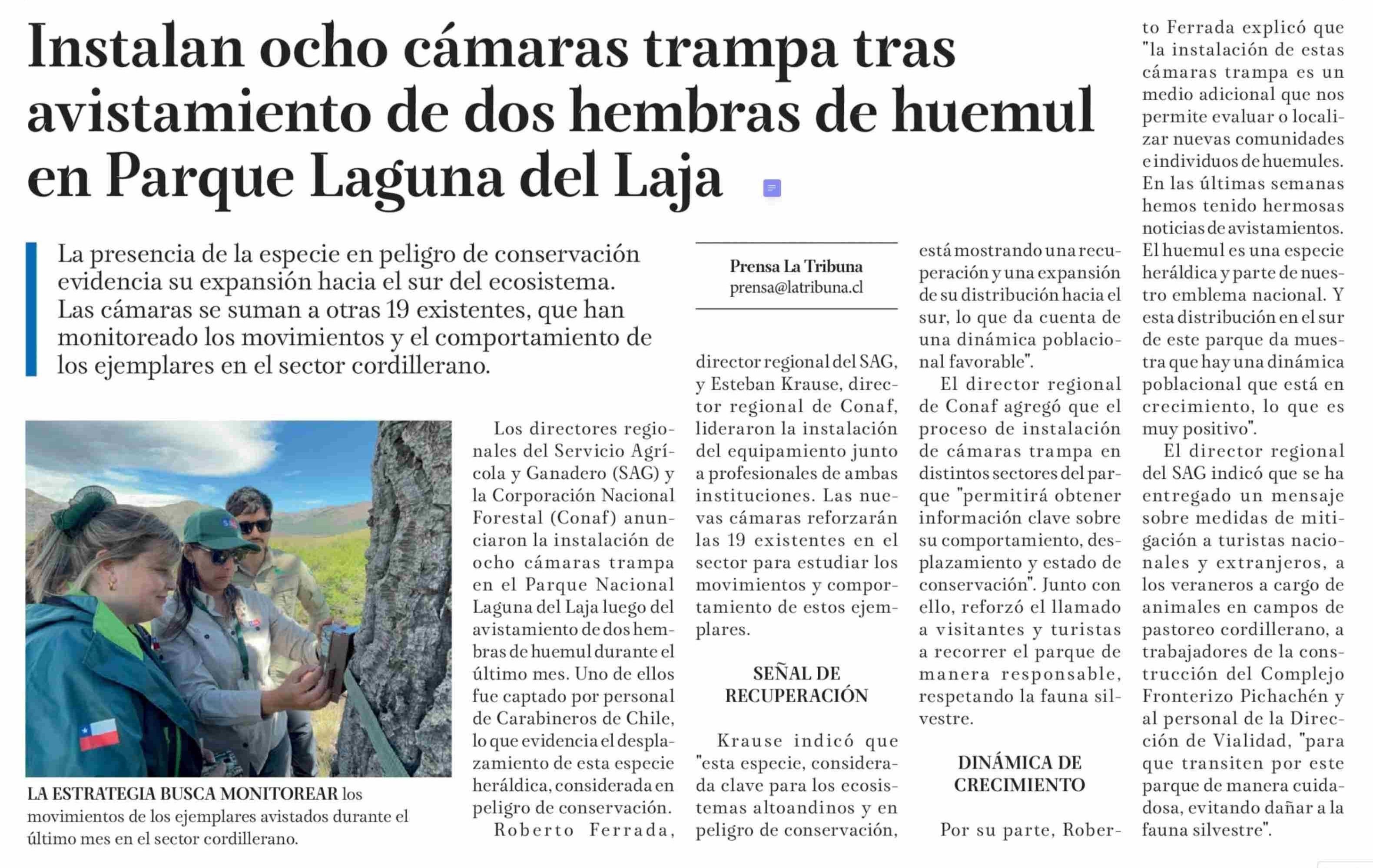 Título: Instalan ocho cámaras trampa tras avistamiento de dos hembras de huemul en Parque Laguna del Laja