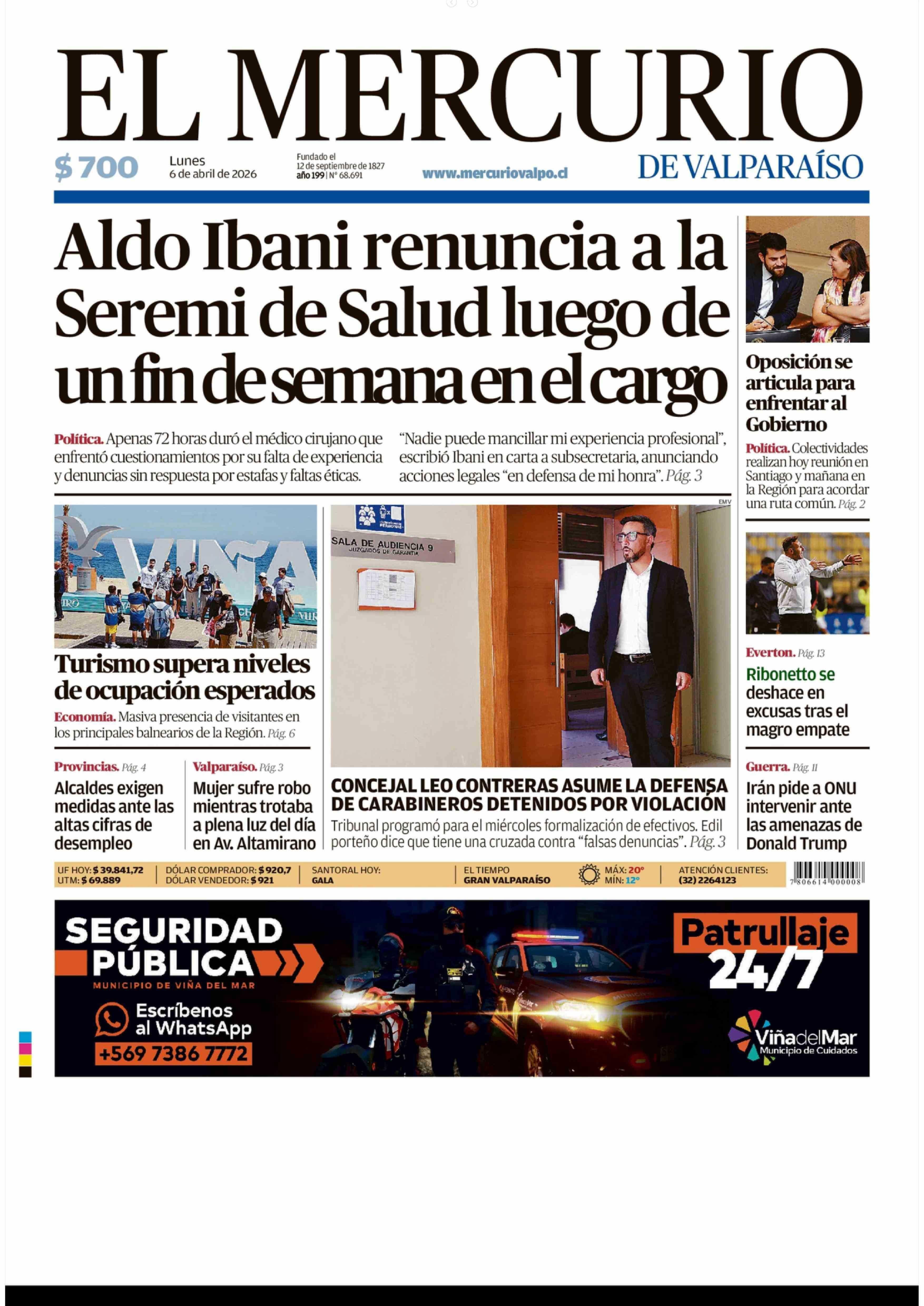 | Fecha: | 06-04-2026 | Sector: | Portada | Región: | Región de Valparaíso |