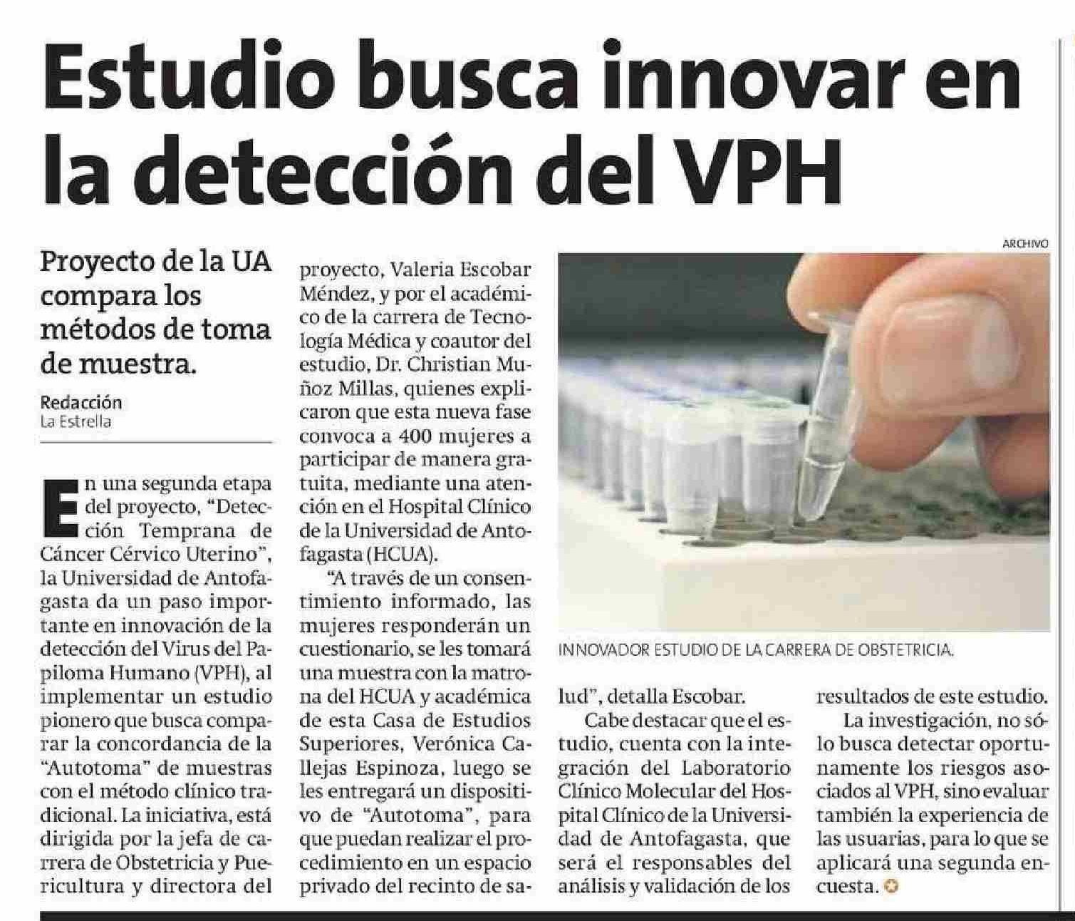 Estudio busca innovar en la detección del VPH 19-05-2025 La Estrella de Antofagasta |