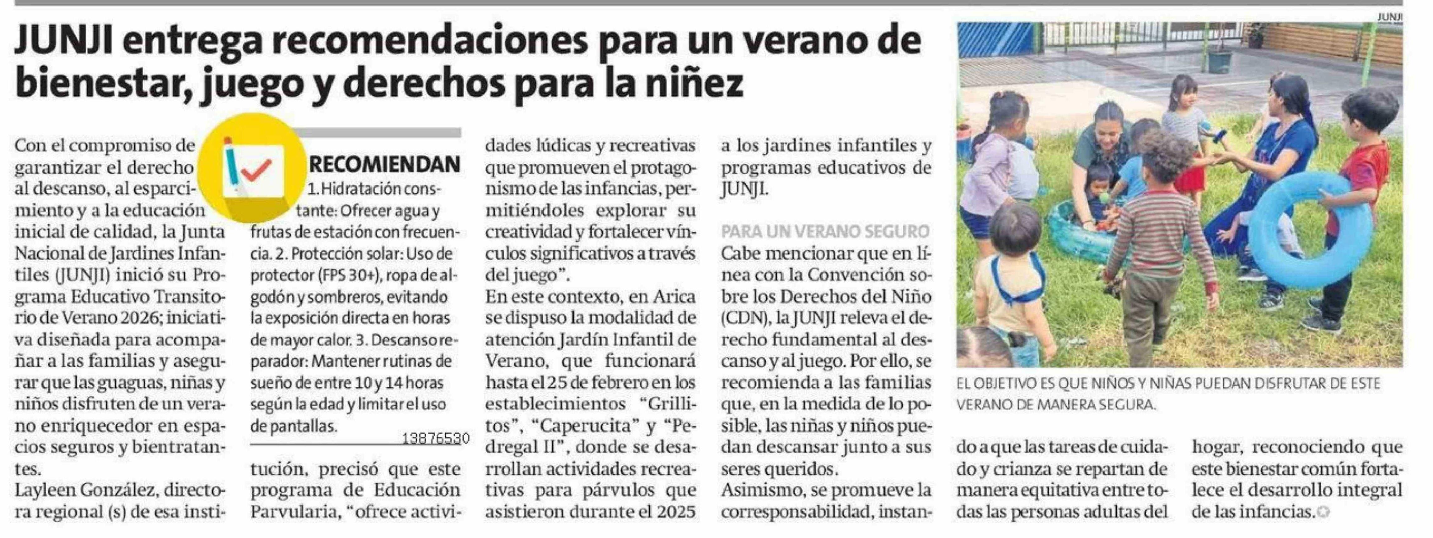 Título: JUNJI entrega recomendaciones para un verano de bienestar, juego y derechos para la niñez