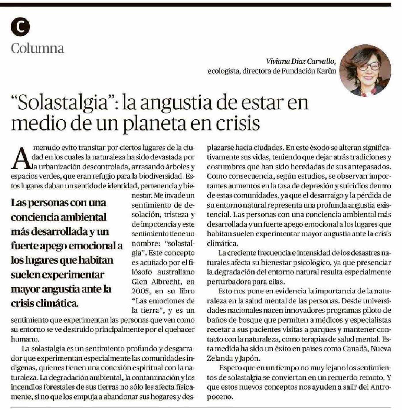 | Título: | Columnas de Opinión: “Solastalgia”: la angustia de estar en medio de un planeta en crisis |