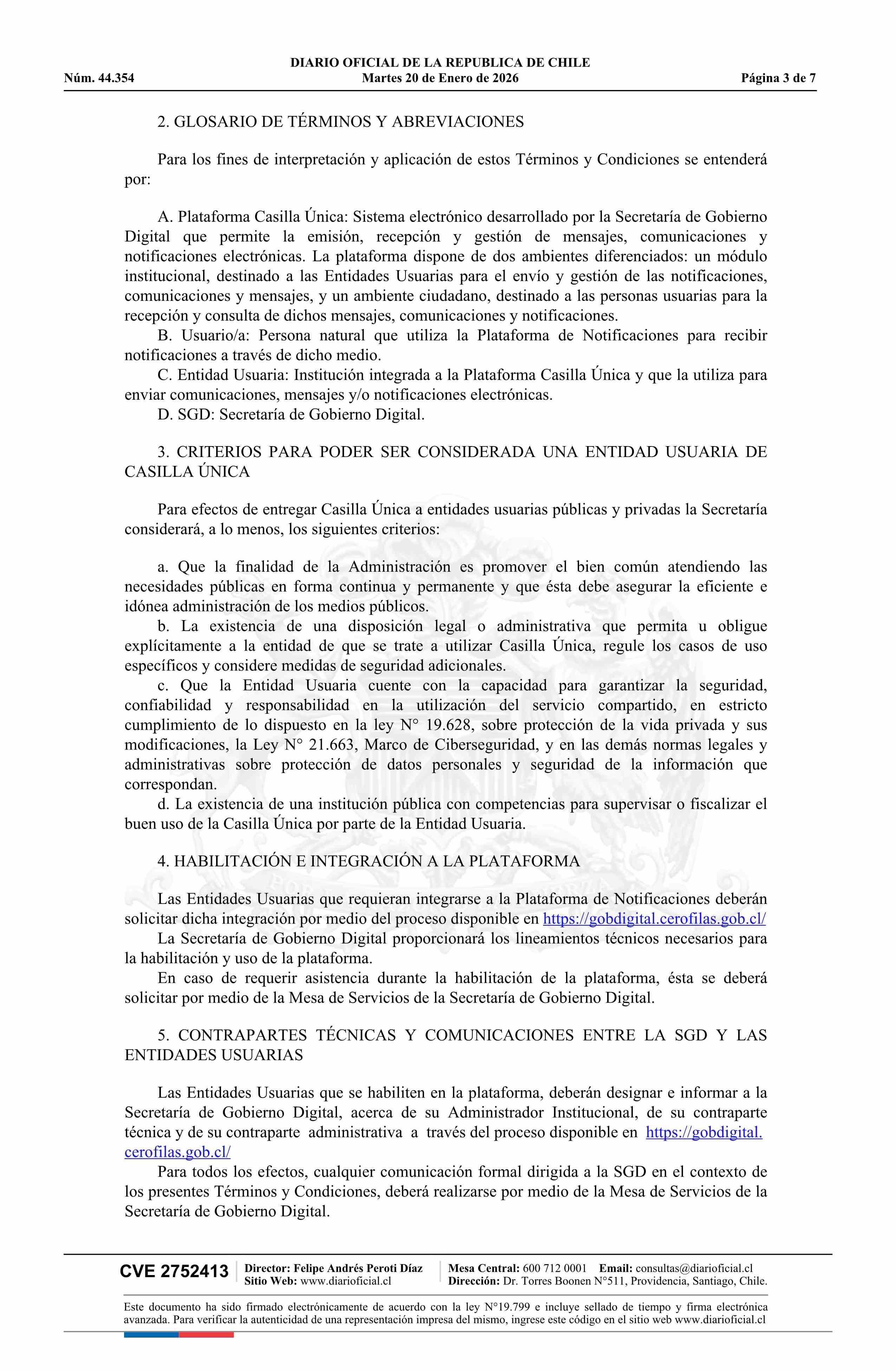 Resolución exenta número 969, de 2025.- Aprueba términos y condiciones de uso de la plataforma Casilla Única 20-01-2026 DIARIO OFICIAL CHILE - BOLETÍN OFICIAL DE MINERÍA |