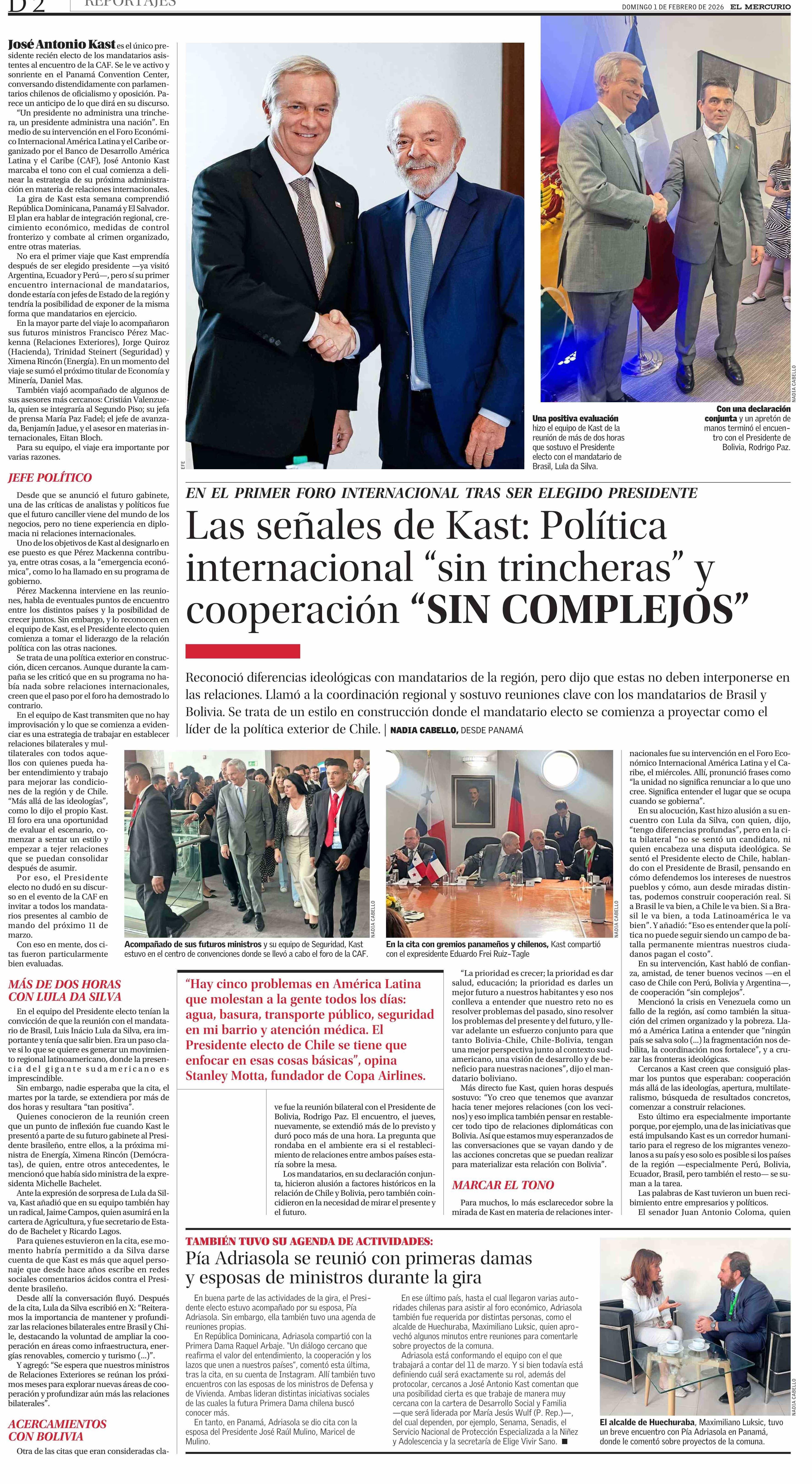 Las señales de Kast: Política internacional “sin trincheras” y cooperación “SIN COMPLEJOS” 01-02-2026 El Mercurio |