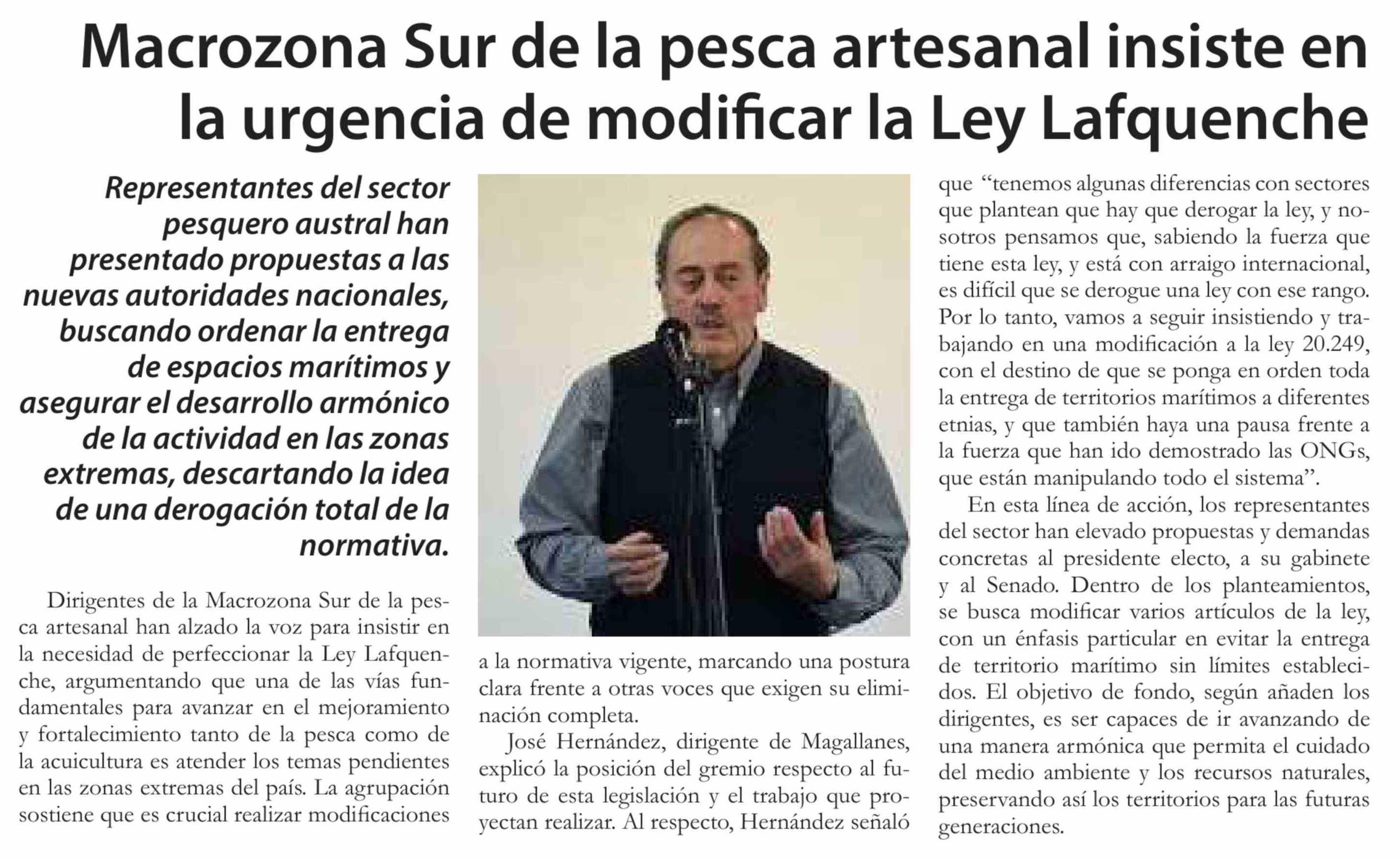 | Título: | Macrozona Sur de la pesca artesanal insiste en la urgencia de modificar la Ley Lafquenche |