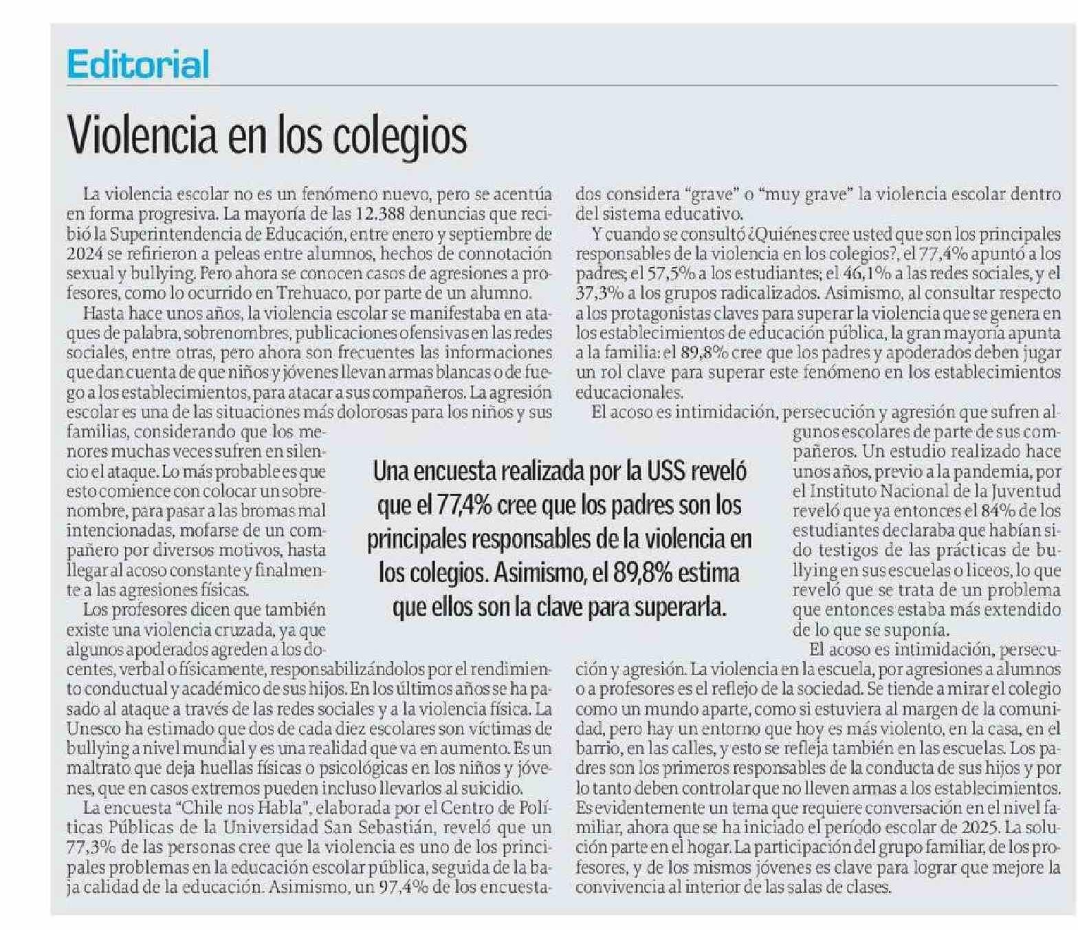 EDITORIAL: Violencia en los colegios 21-03-2025 El Sur |