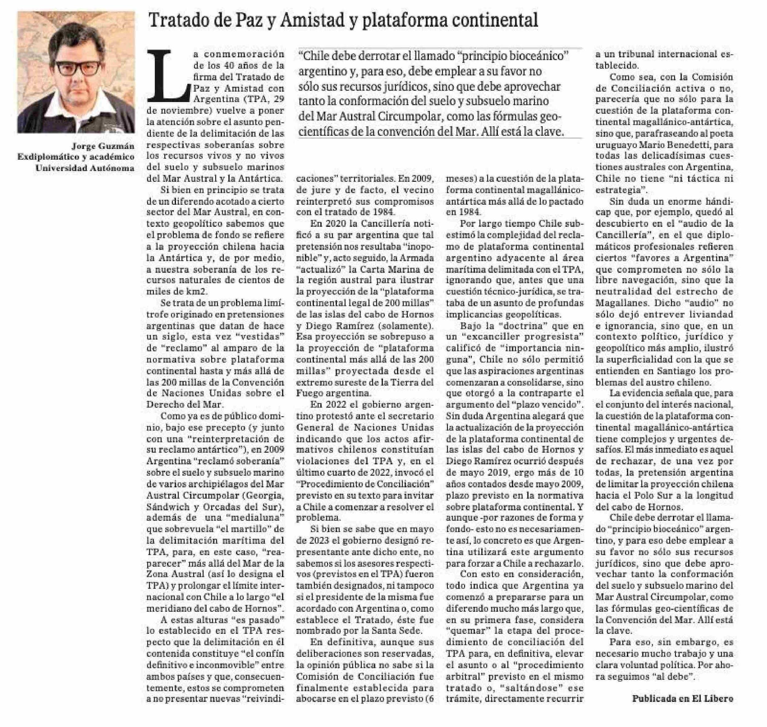Tratado de Paz y Amistad y plataforma continental 24-11-2024 El Magallanes |