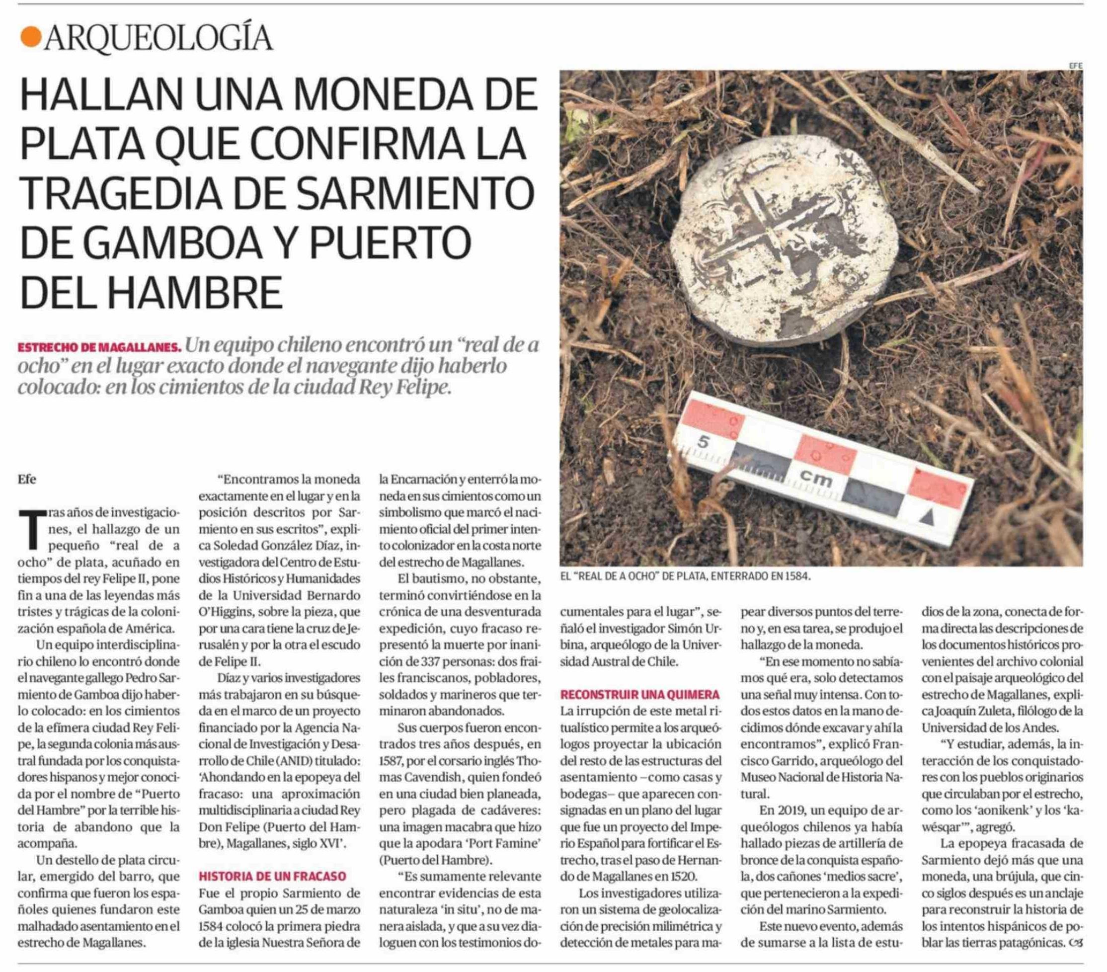 Título: HALLAN UNA MONEDA DE PLATA QUE CONFIRMA LA TRAGEDIA DE SARMIENTO DE GAMBOA Y PUERTO DEL HAMBRE