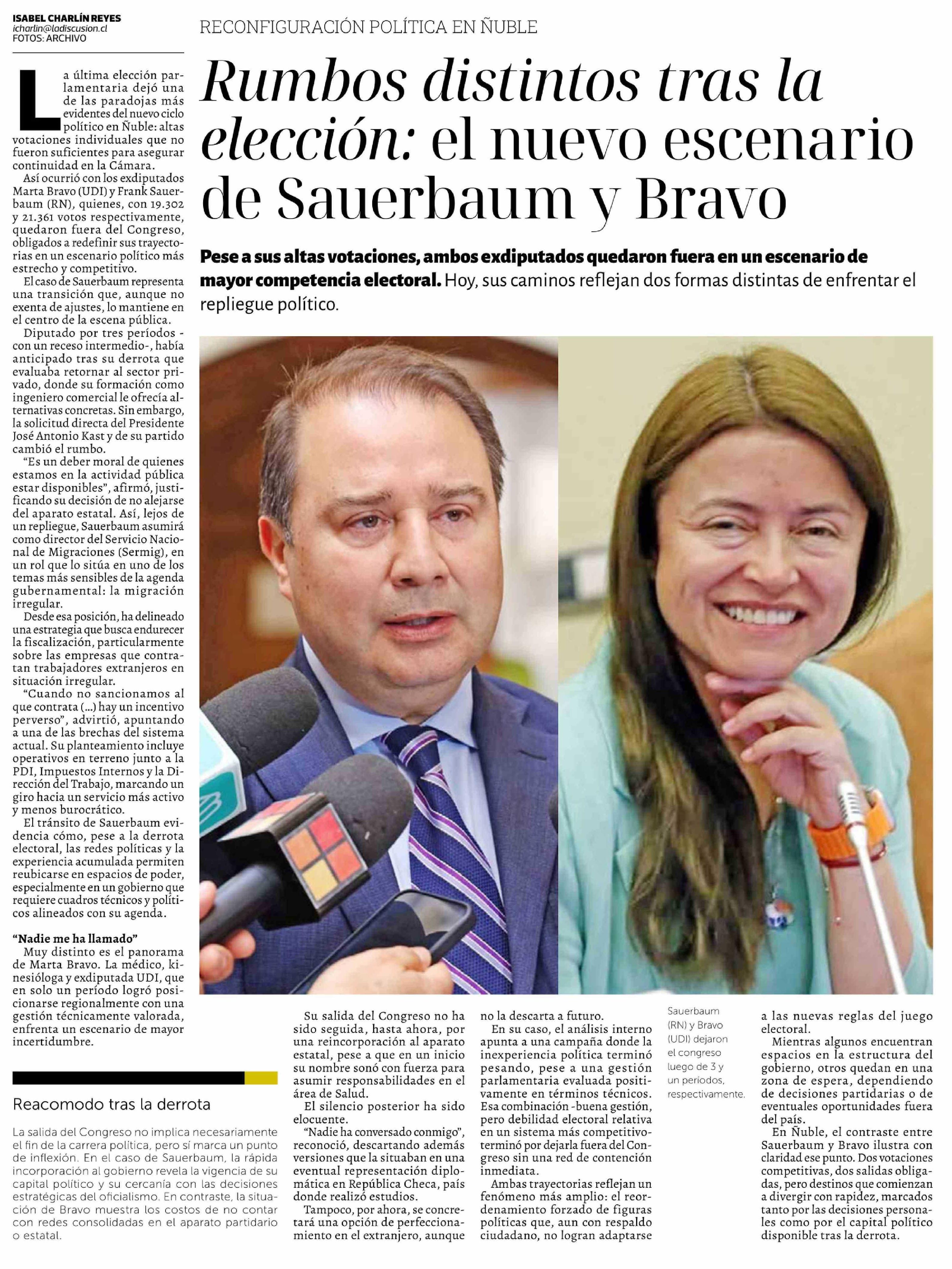 Rumbos distintos tras la elección: el nuevo escenario de Sauerbaum y Bravo 22-03-2026 La Discusión |