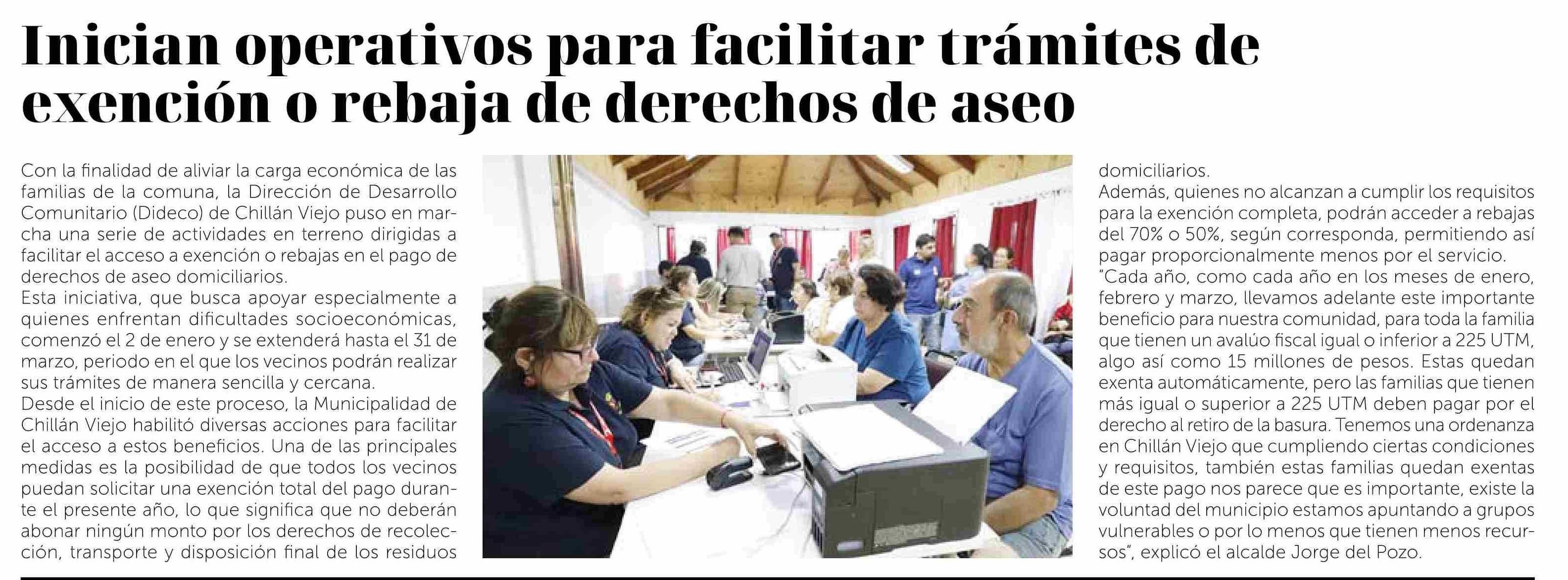 Título: Inician operativos para facilitar trámites de exención o rebaja de derechos de aseo