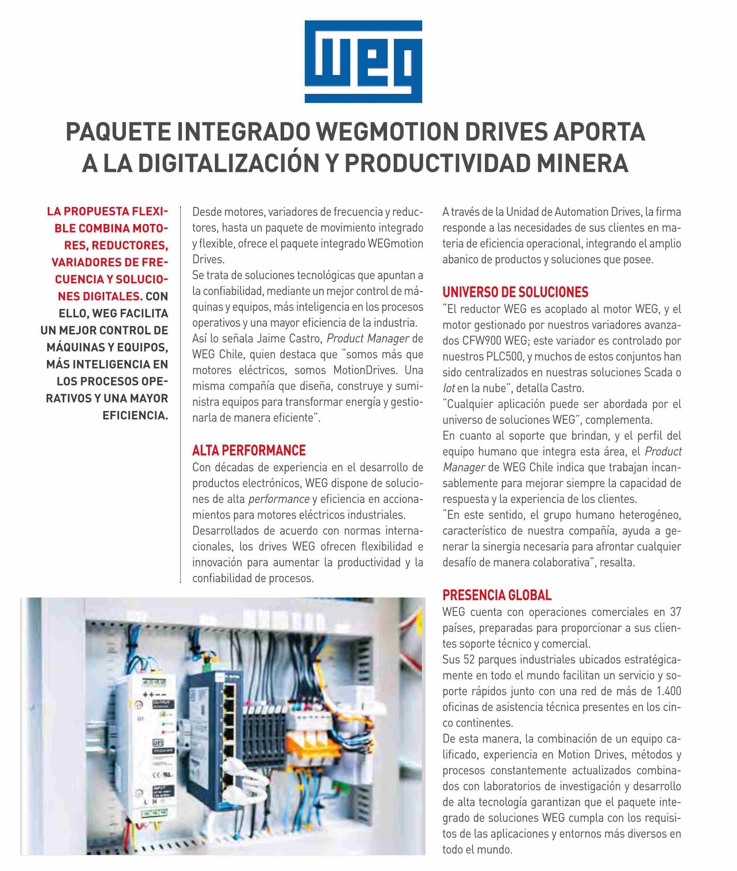 | Título: | PAQUETE INTEGRADO WEGMOTION DRIVES APORTA A LA DIGITALIZACIÓN Y PRODUCTIVIDAD MINERA |