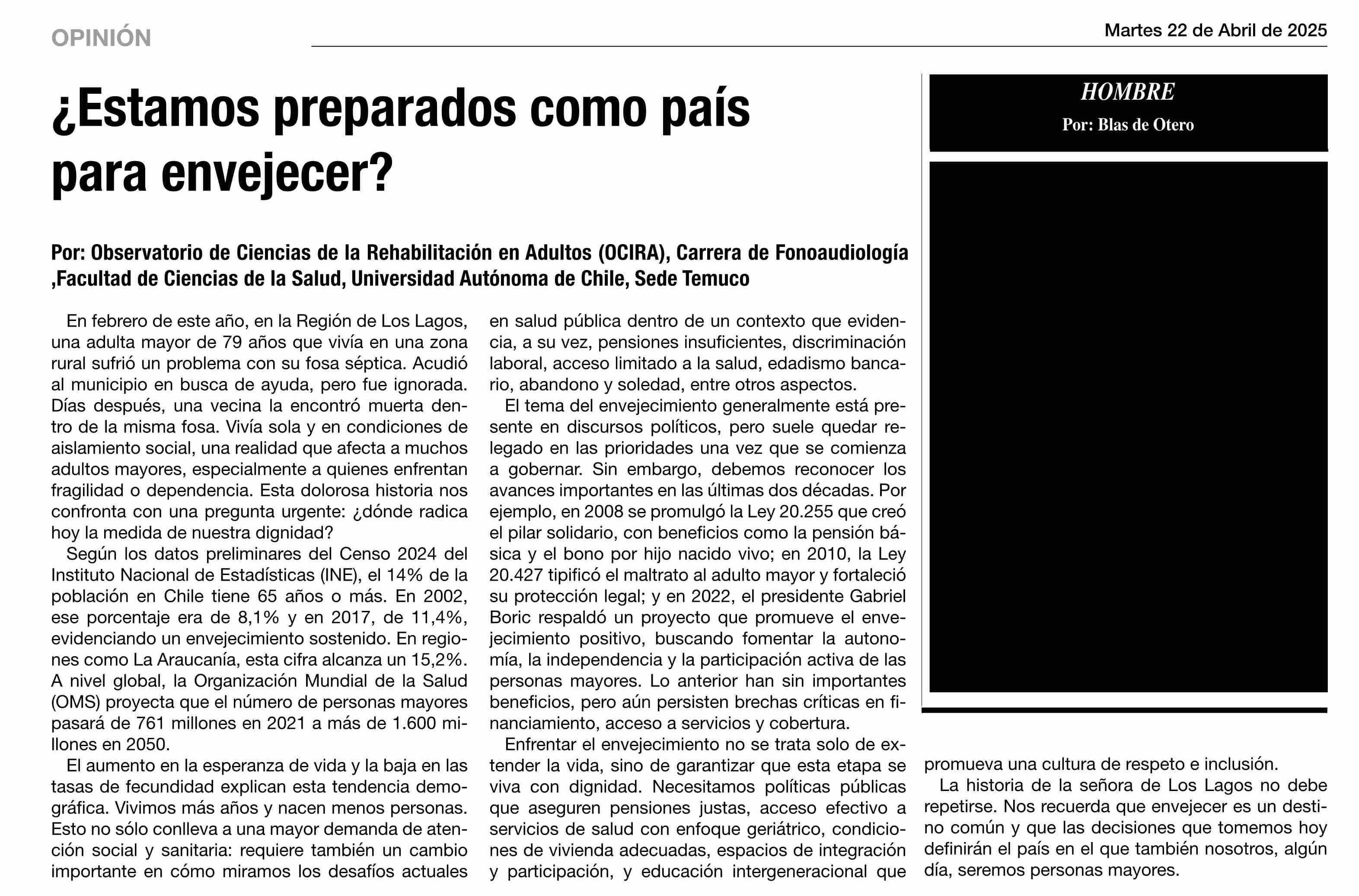 | Título: | COLUMNAS DE OPINIÓN: ¿Estamos preparados como país para envejecer? |