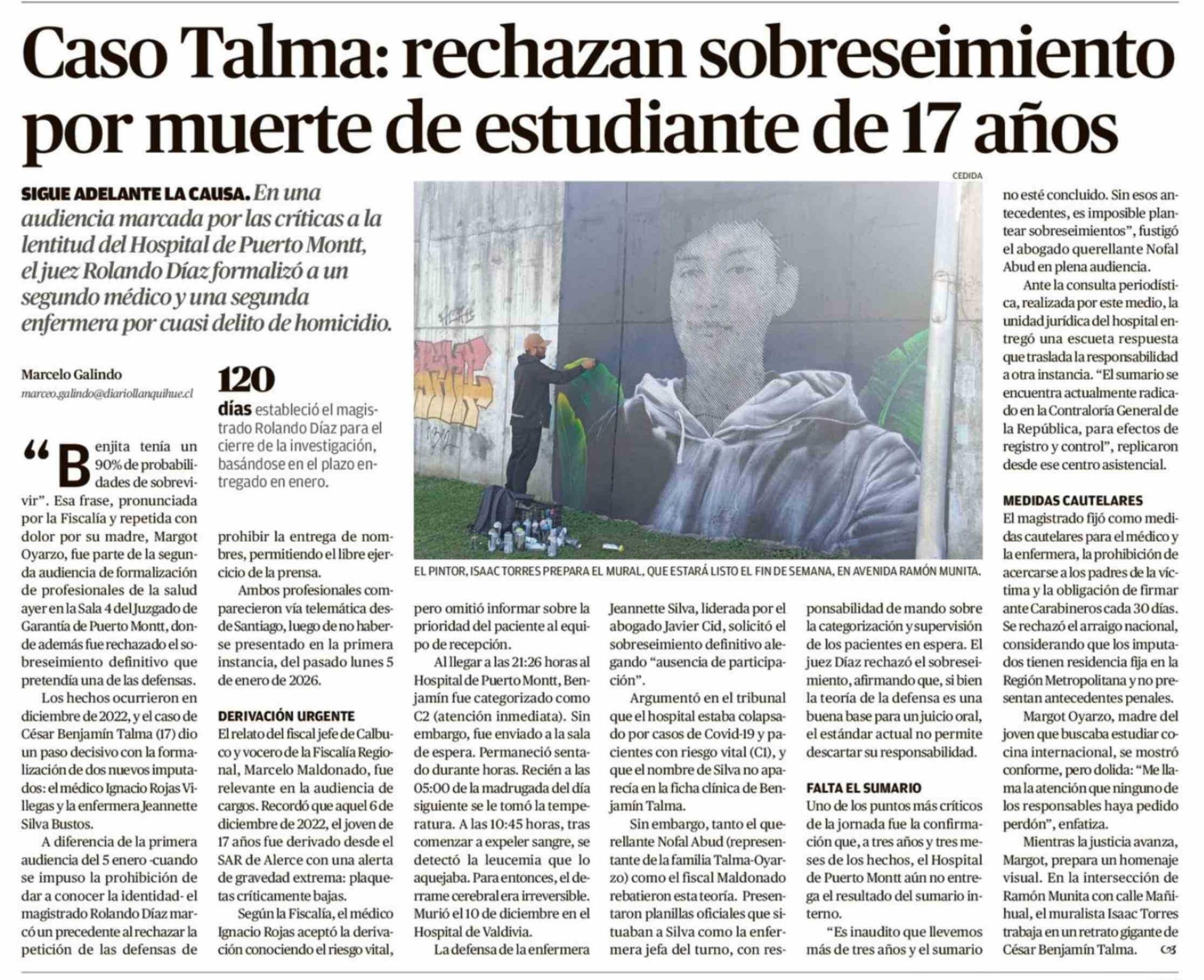 Caso Talma: rechazan sobreseimiento por muerte de estudiante de 17 años 17-03-2026 El Llanquihue |