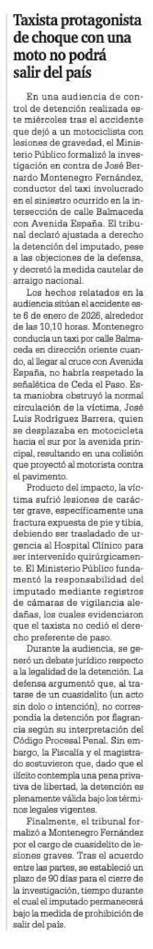 Título: Taxista protagonista de choque con una moto no podrá salir del país