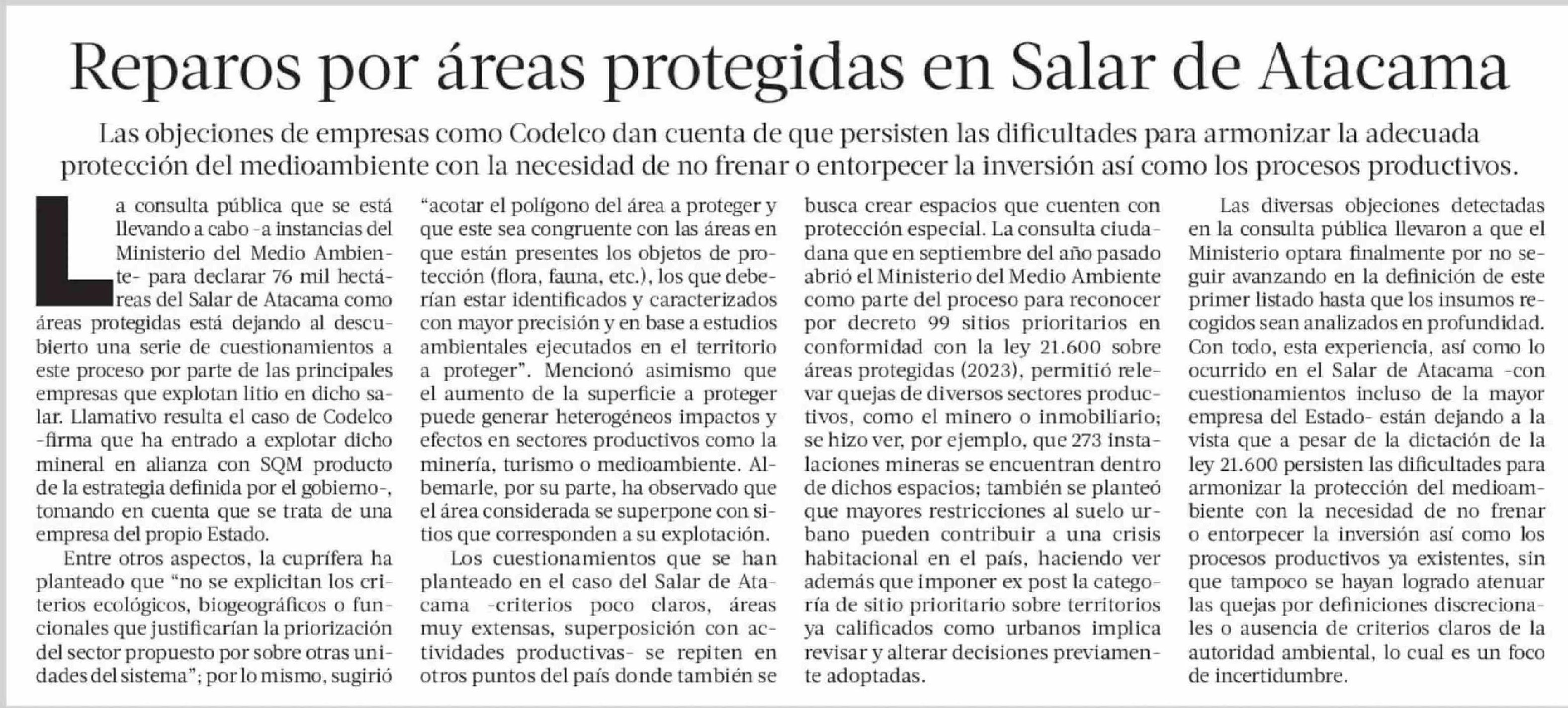 Título: EDITORIAL: Reparos por áreas protegidas en Salar de Atacama