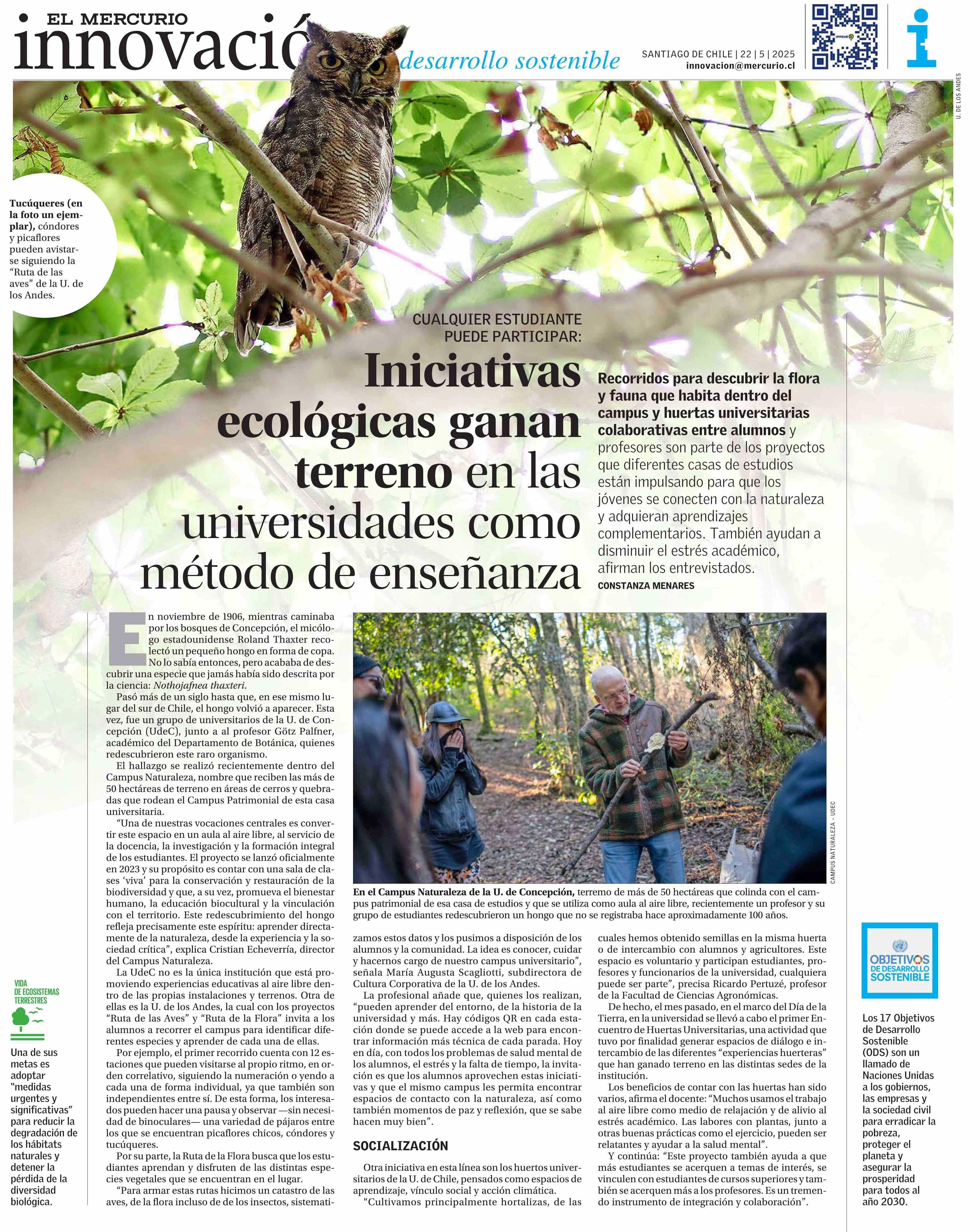 Iniciativas ecológicas ganan terreno en las universidades como método de enseñanza 22-05-2025 El Mercurio |