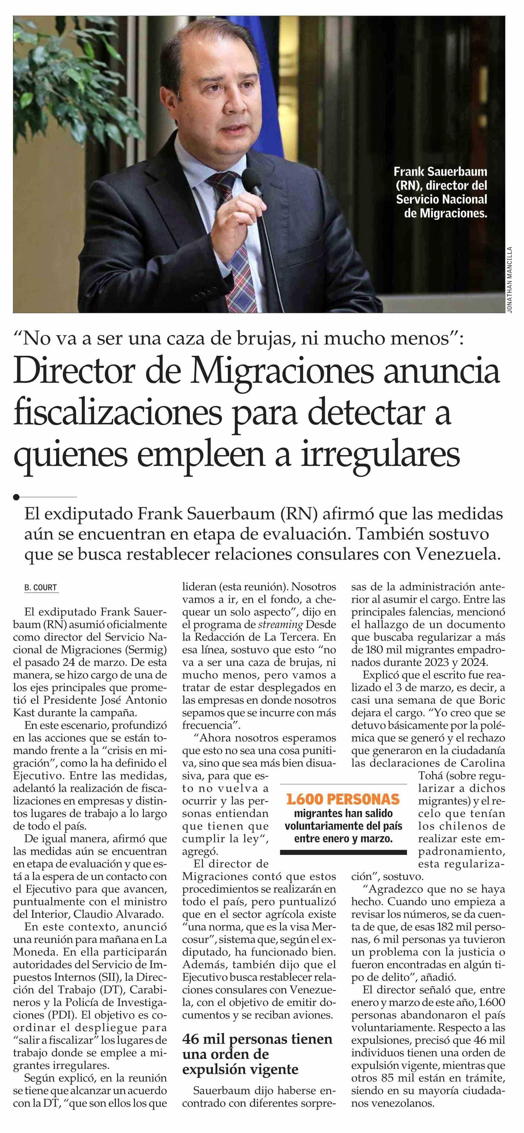 Título: Director de Migraciones anuncia fiscalizaciones para detectar a quienes empleen a irregulares