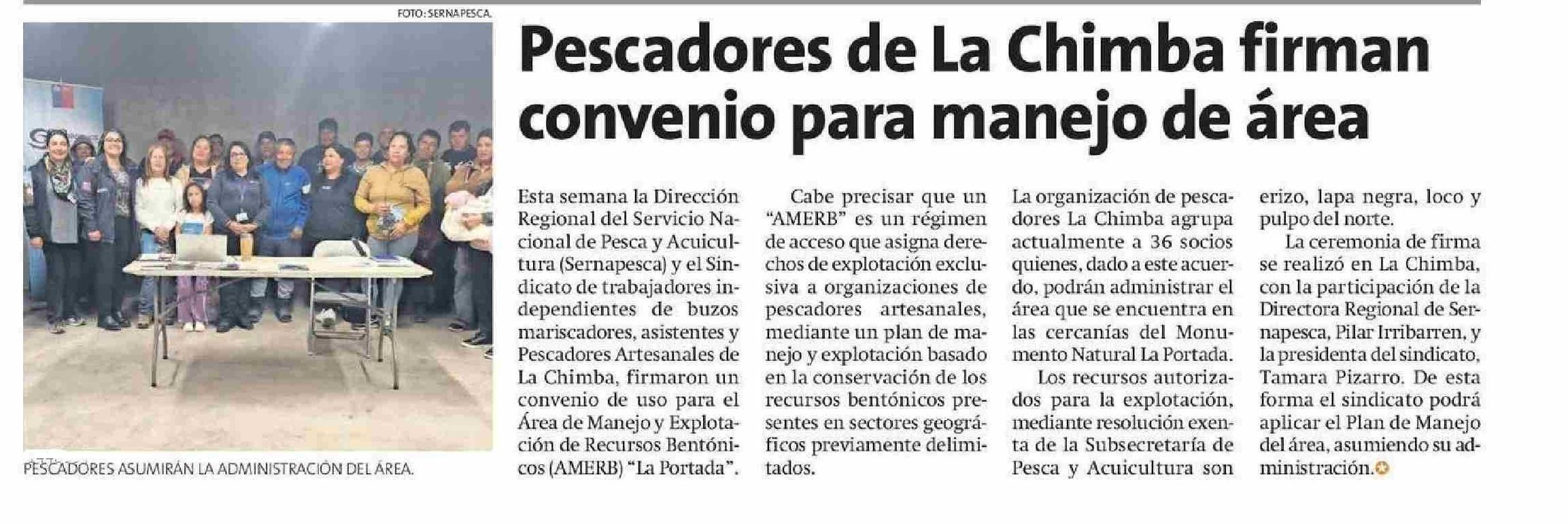 Pescadores de La Chimba firman convenio para manejo de área 24-05-2025 La Estrella de Antofagasta |