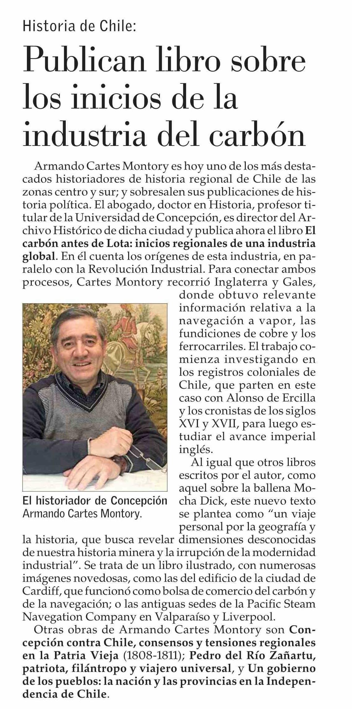 | Título: | Publican libro sobre los inicios de la industria del carbón |