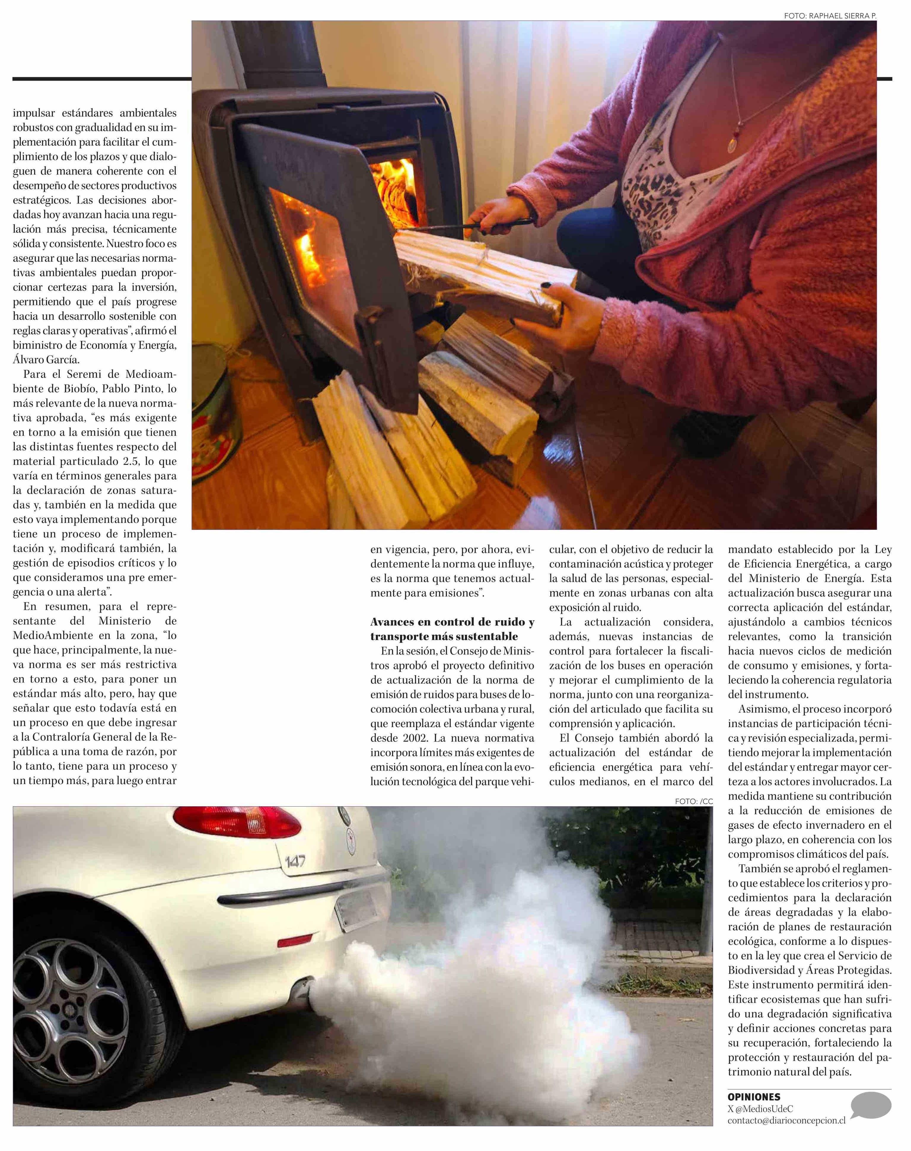 Aprueban norma de calidad del aire para material particulado fino 2.5: leña residencial en Gran Concepción representa el 60% 05-01-2026 Diario Concepción |