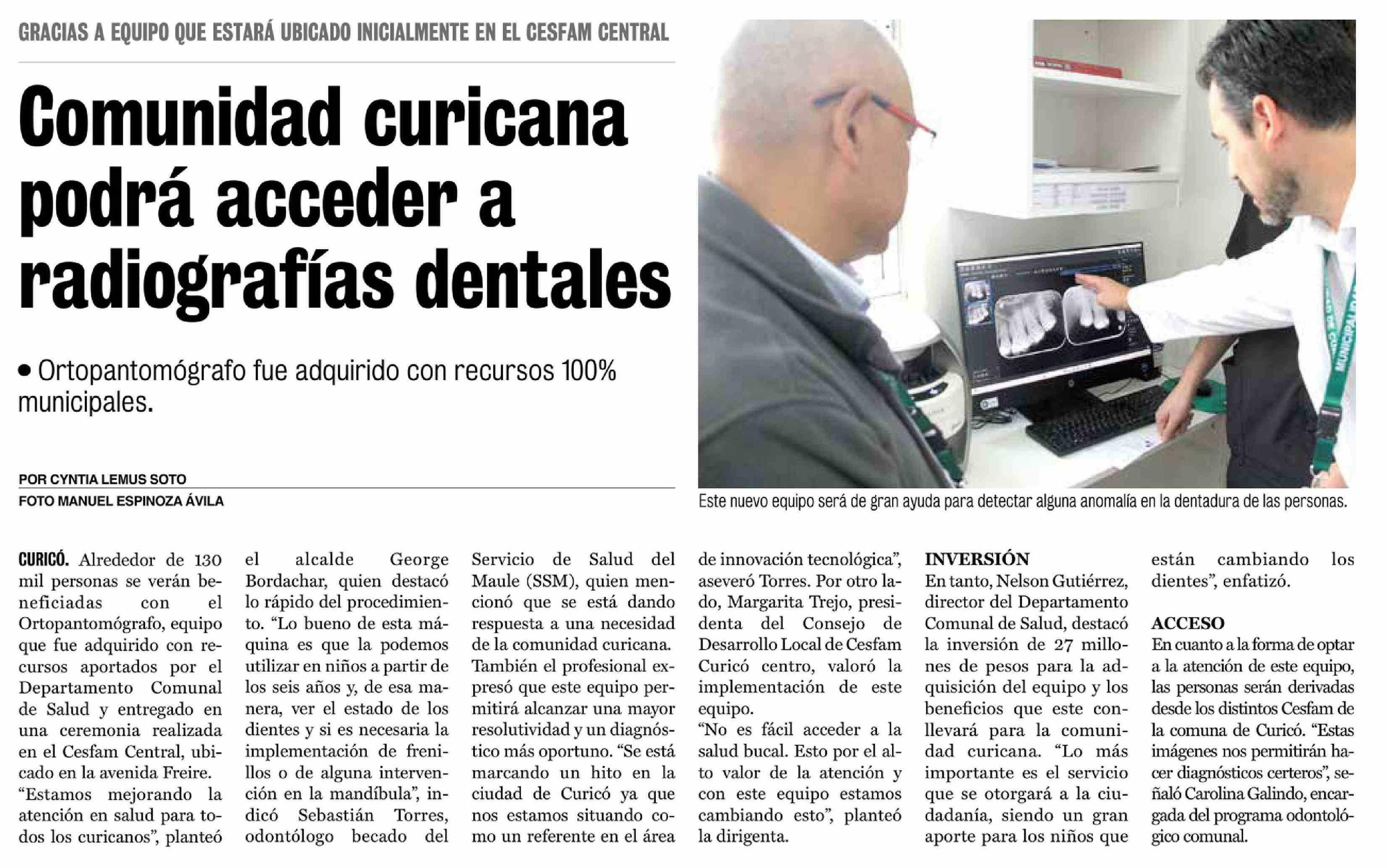 Título: Comunidad curicana podrá acceder a radiografías dentales