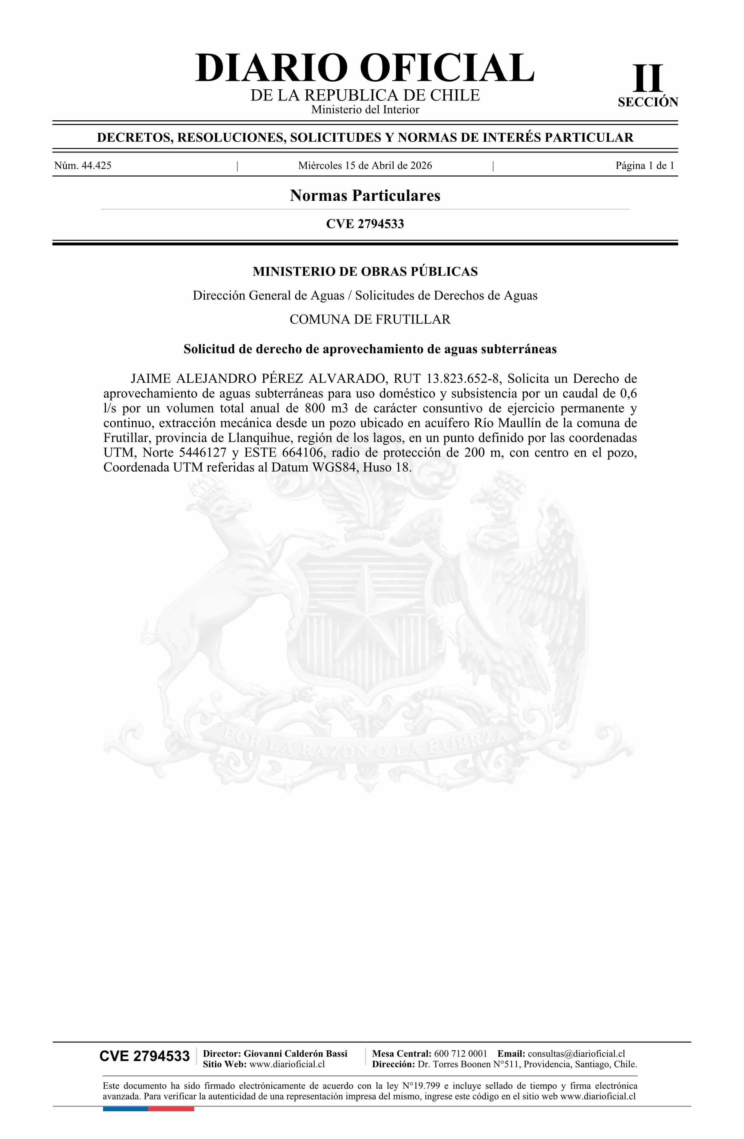 Solicitud Pérez Alvarado Jaime Alejandro 15-04-2026 Diario Oficial Edición Electrónica |
