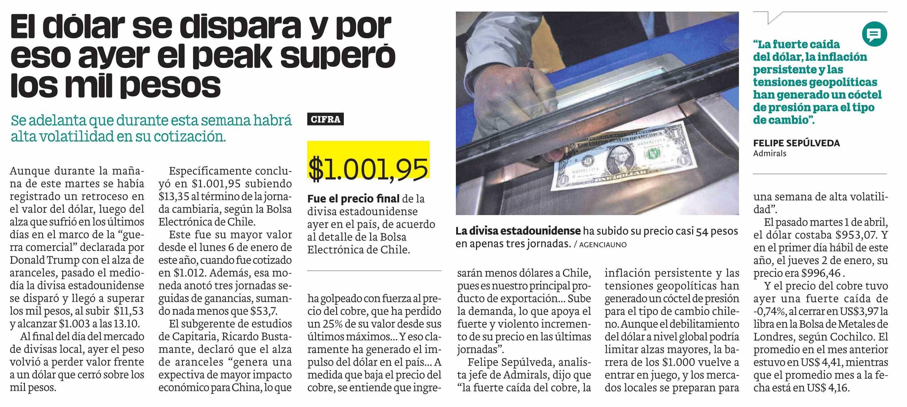 El dólar se dispara y por eso ayer el peak superó los mil pesos 09-04-2025 Publimetro |
