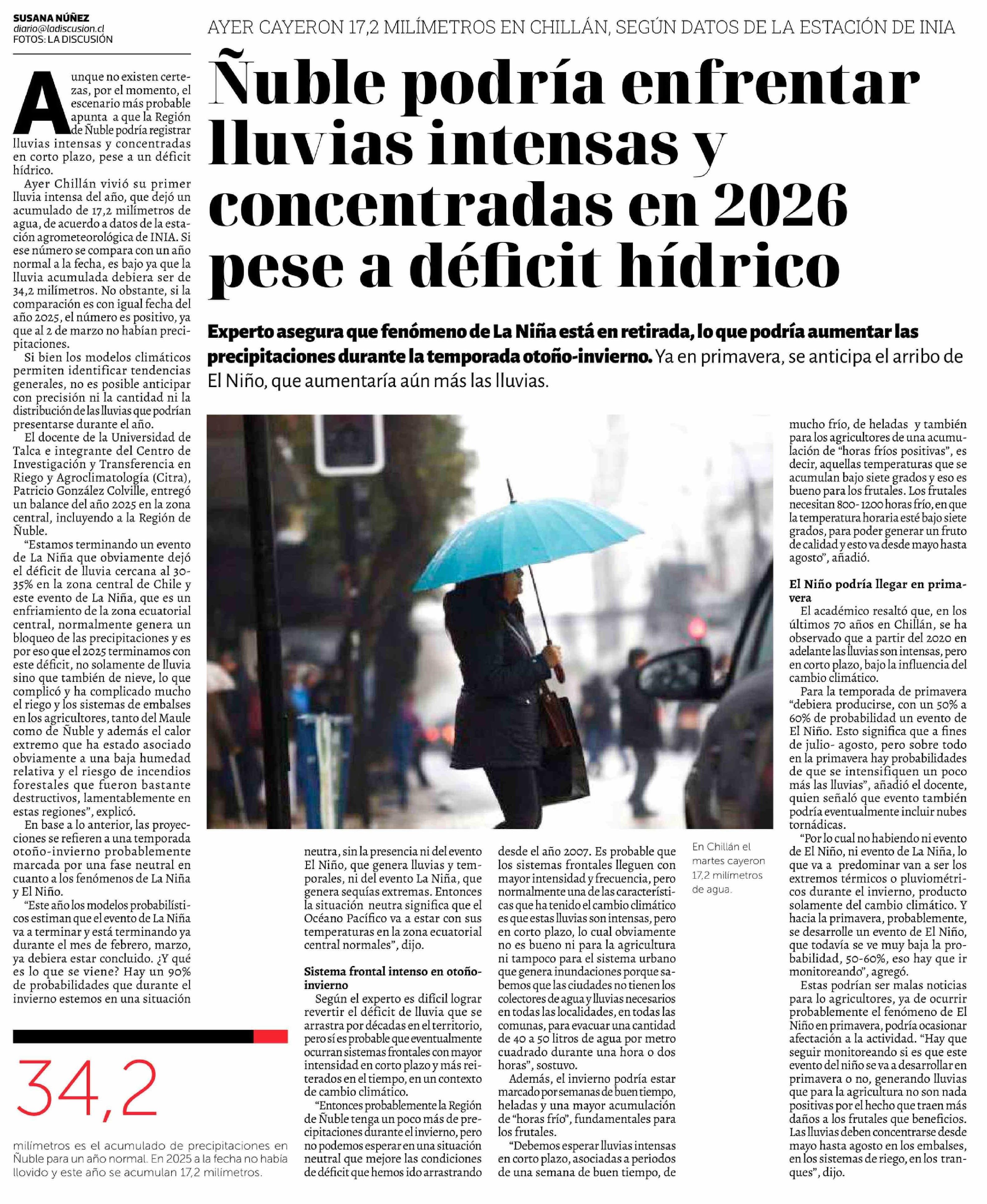 Título: Nuble podría enfrentar lluvias intensas y concentradas en 2026 pese a déficit hídrico