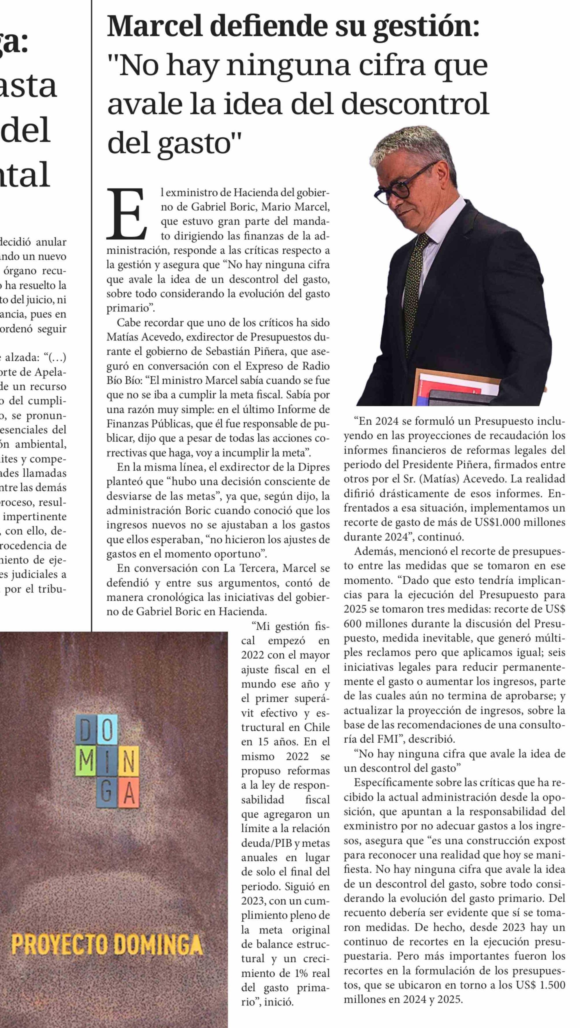 Marcel defiende su gestión: "No hay ninguna cifra que avale la idea del descontrol del gasto" 23-02-2026 Diario Chañarcillo |