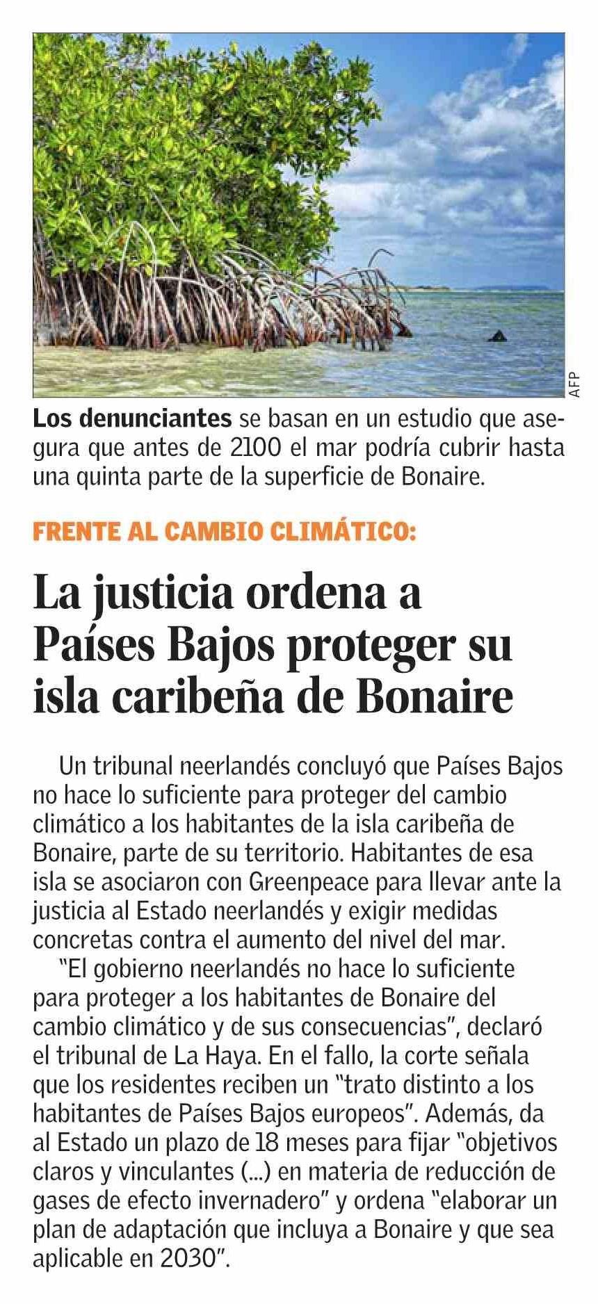 Título: La justicia ordena a Países Bajos proteger su isla caribeña de Bonaire