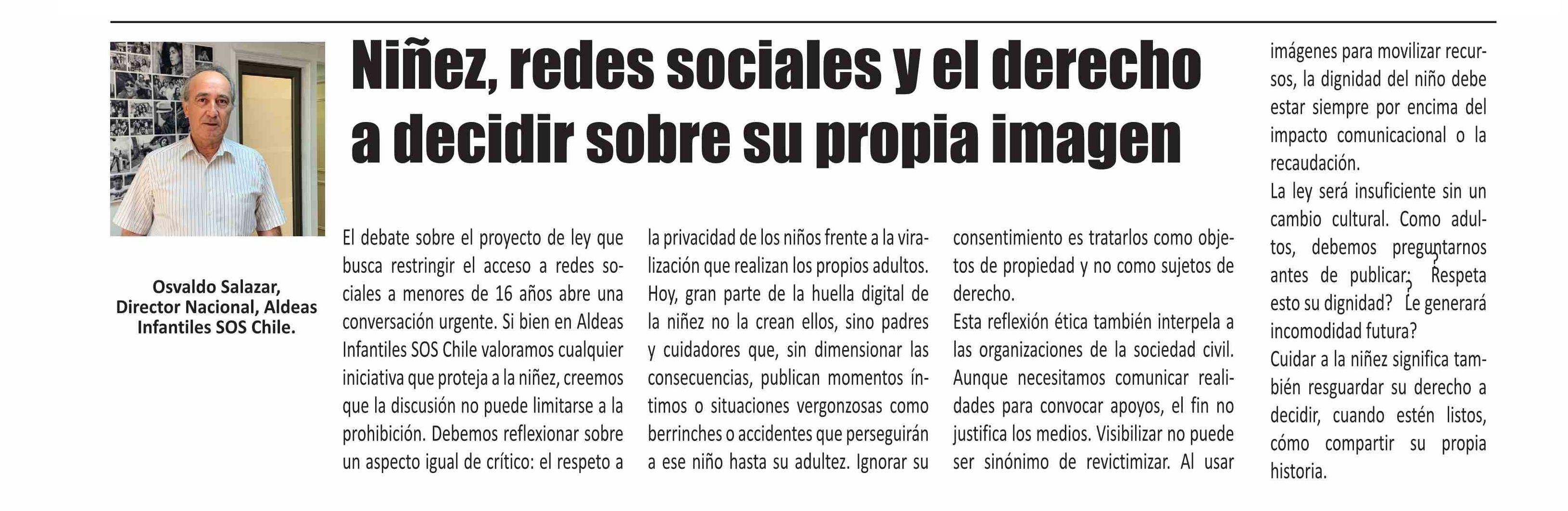 Título: COLUMNAS DE OPINIÓN: NiÍiez, redes sociales y el derecbo a decidir sobre su propia imagen