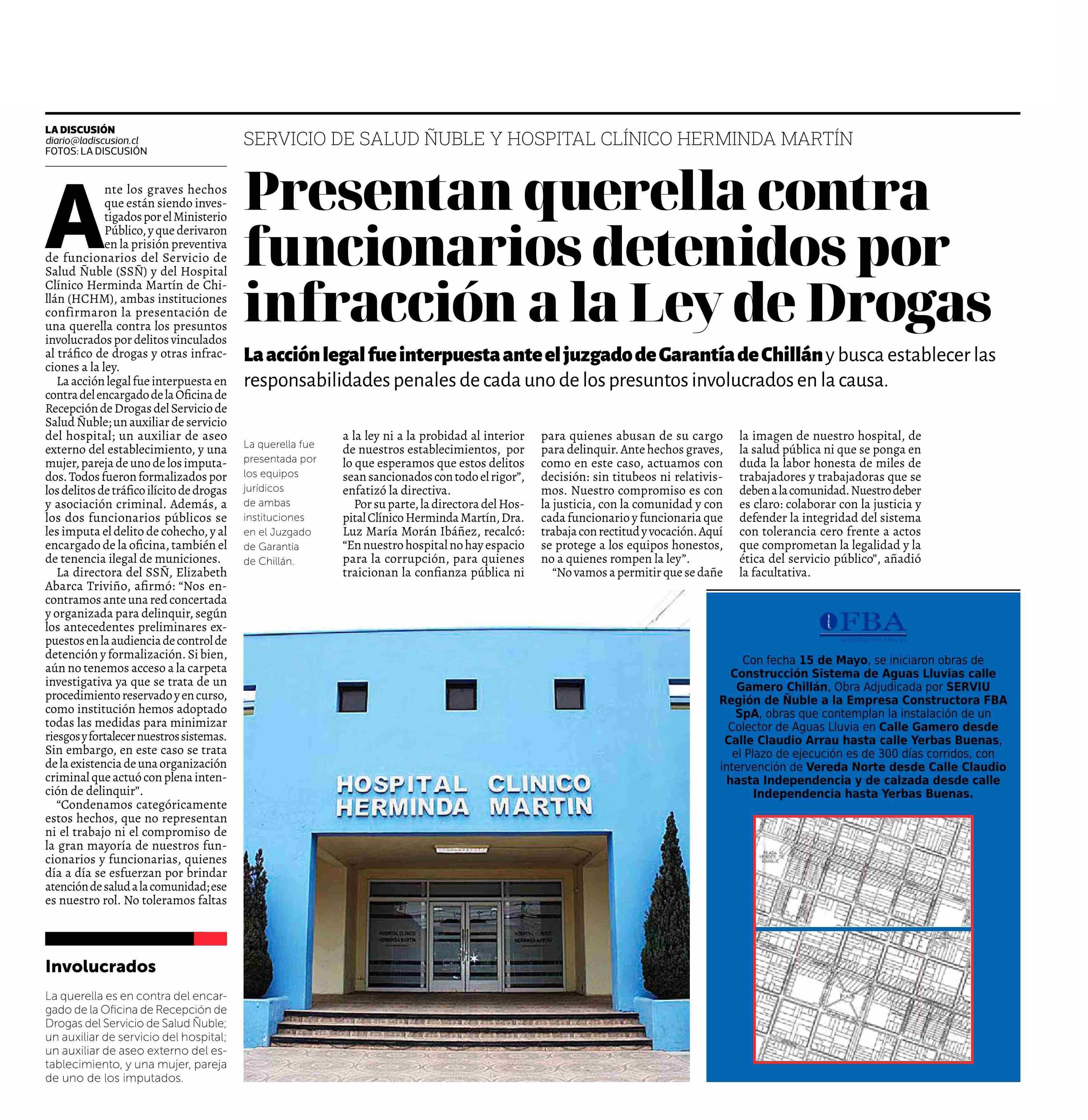 Título: Presentan querella contra funcionarios detenidos por infracción a la Ley de Drogas