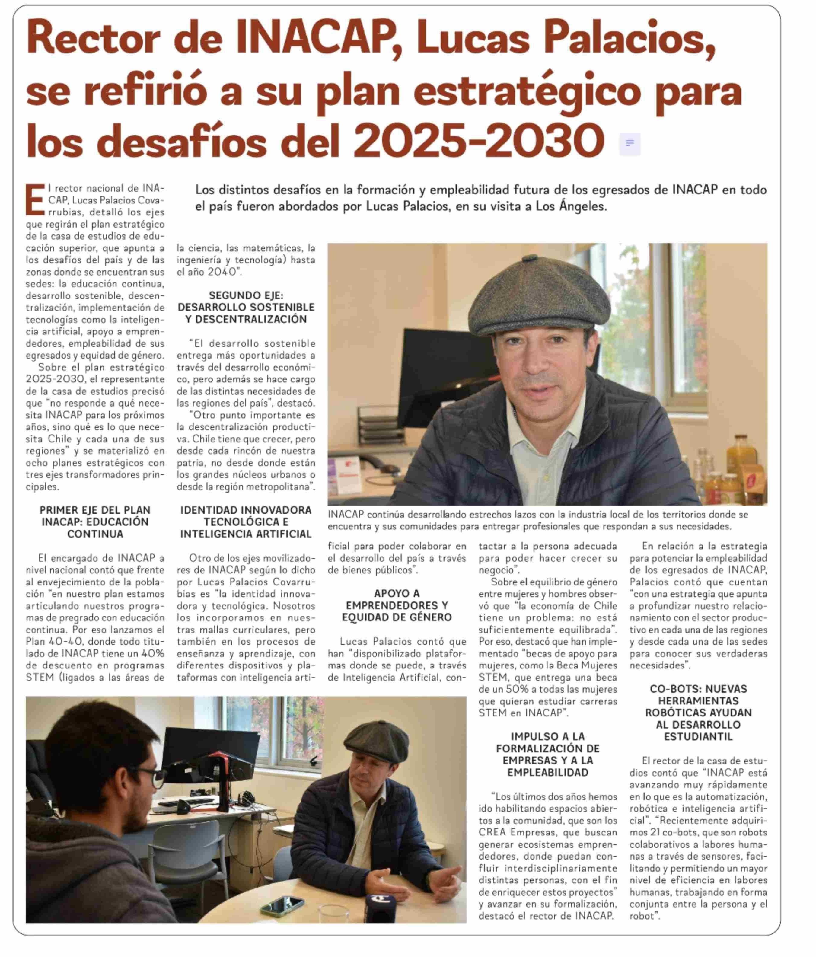 Rector de INACAP, Lucas Palacios, se refirió a su plan estratégico para los desafíos del 2025-2030 11-04-2025 La Tribuna |
