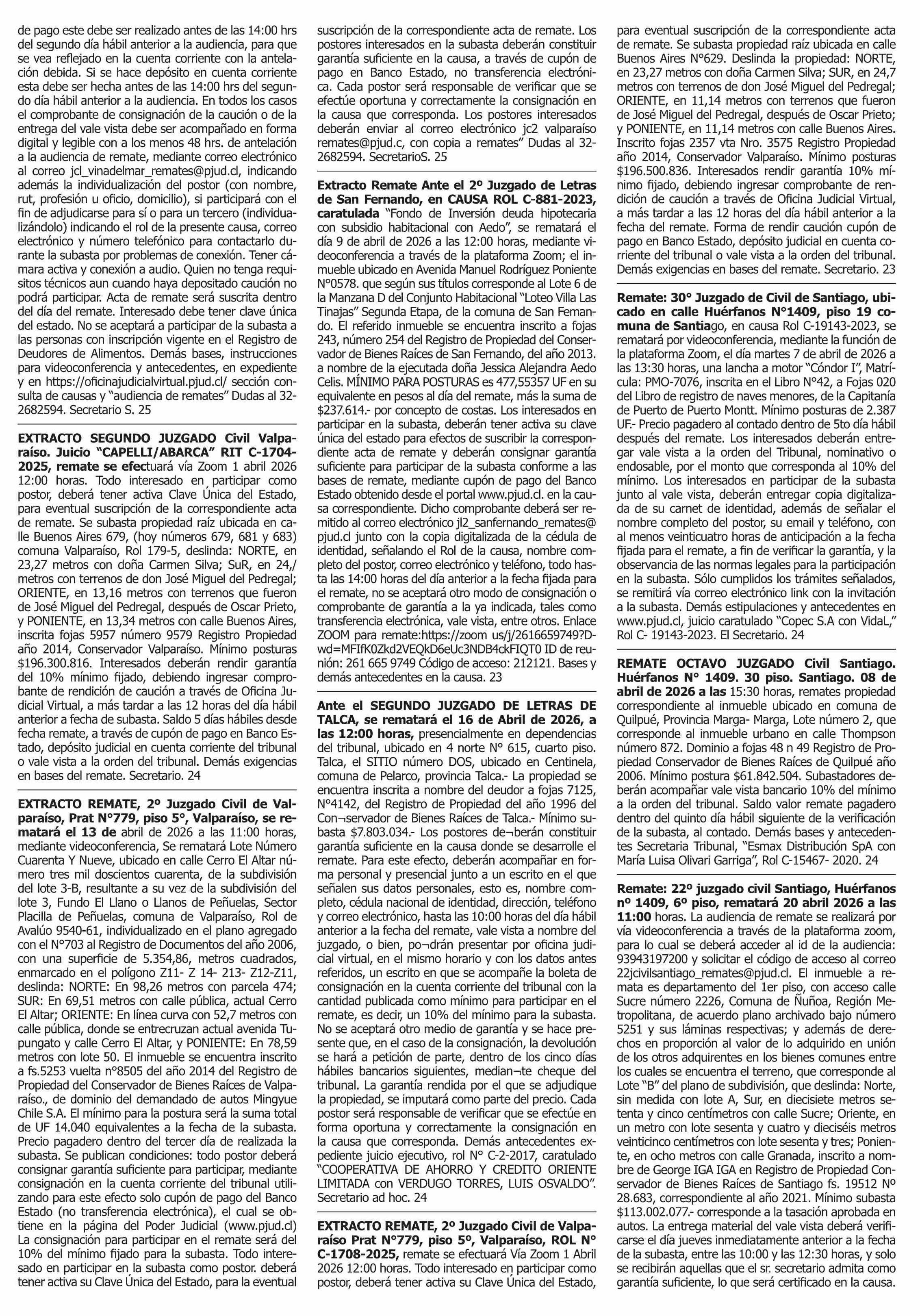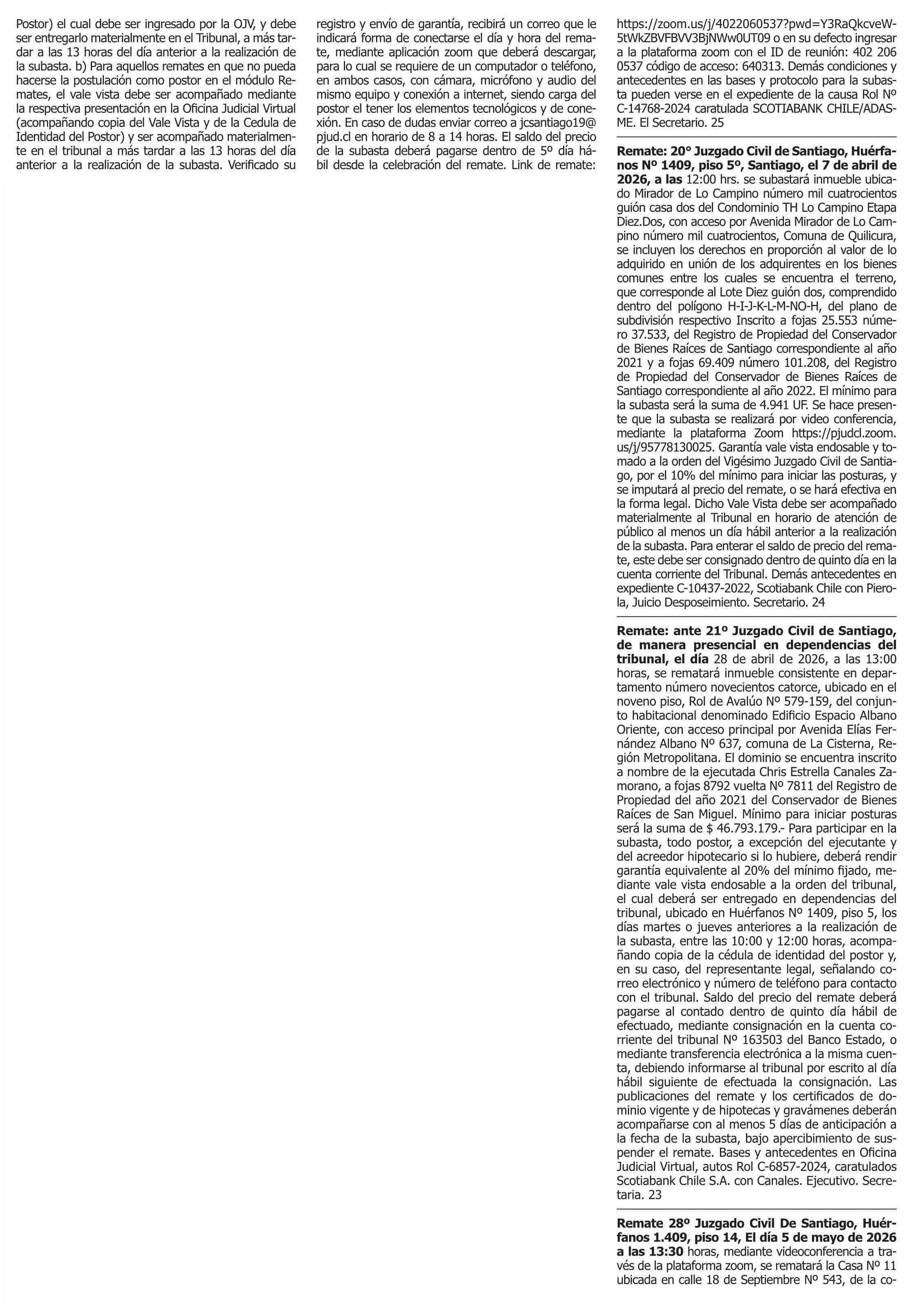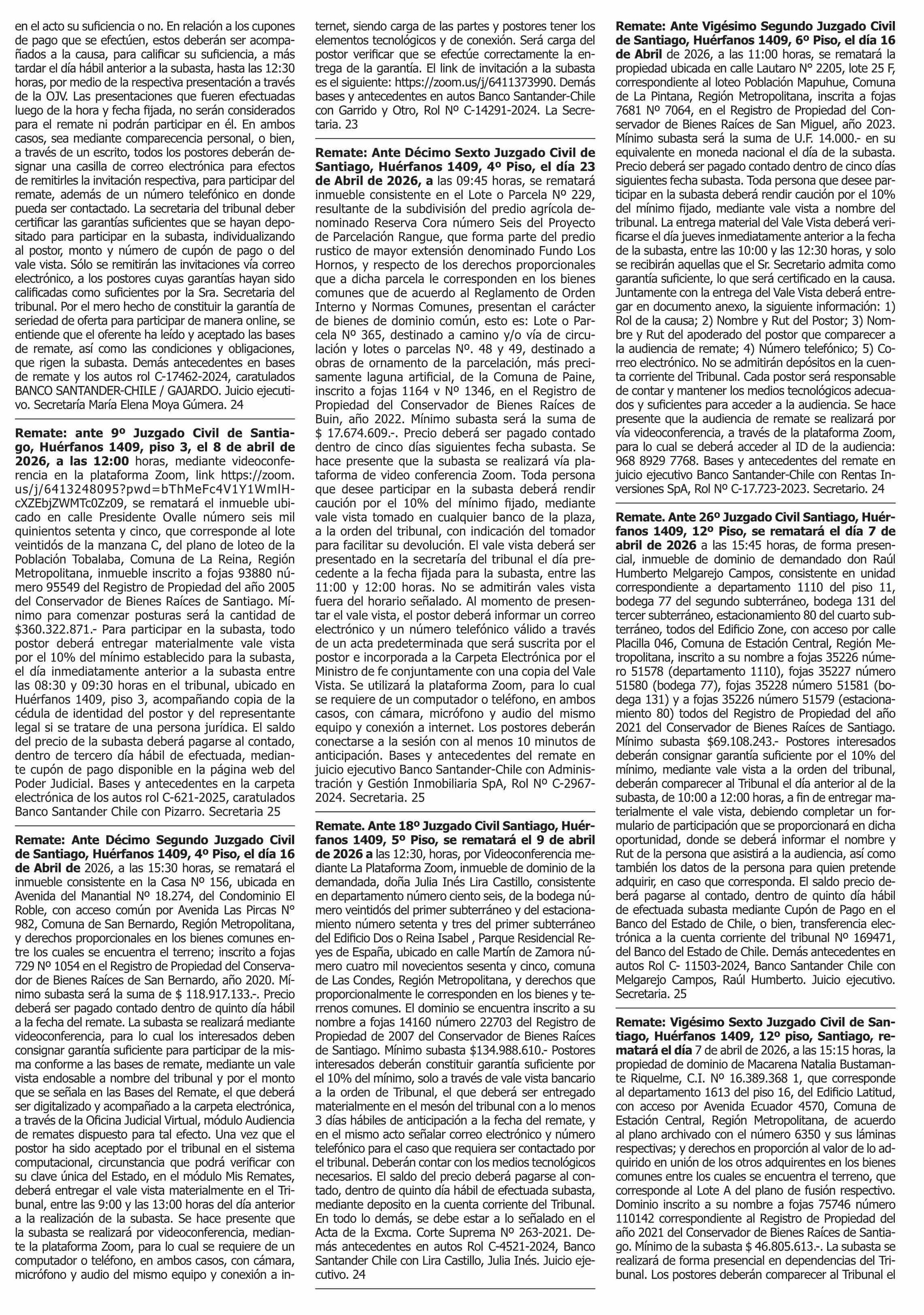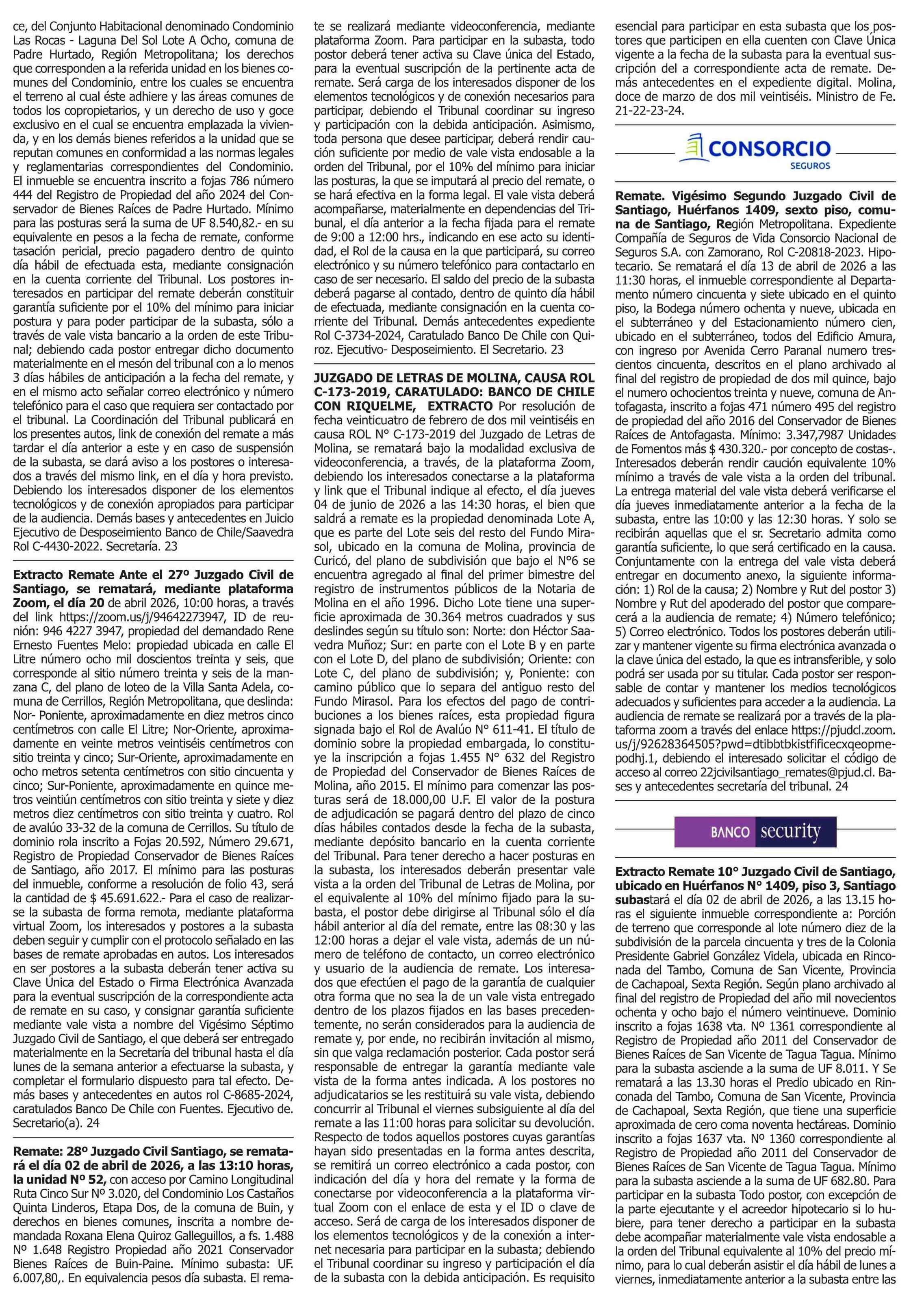Fecha: 23-03-2026 Sector: Remates Región: Región Metropolitana de Santiago