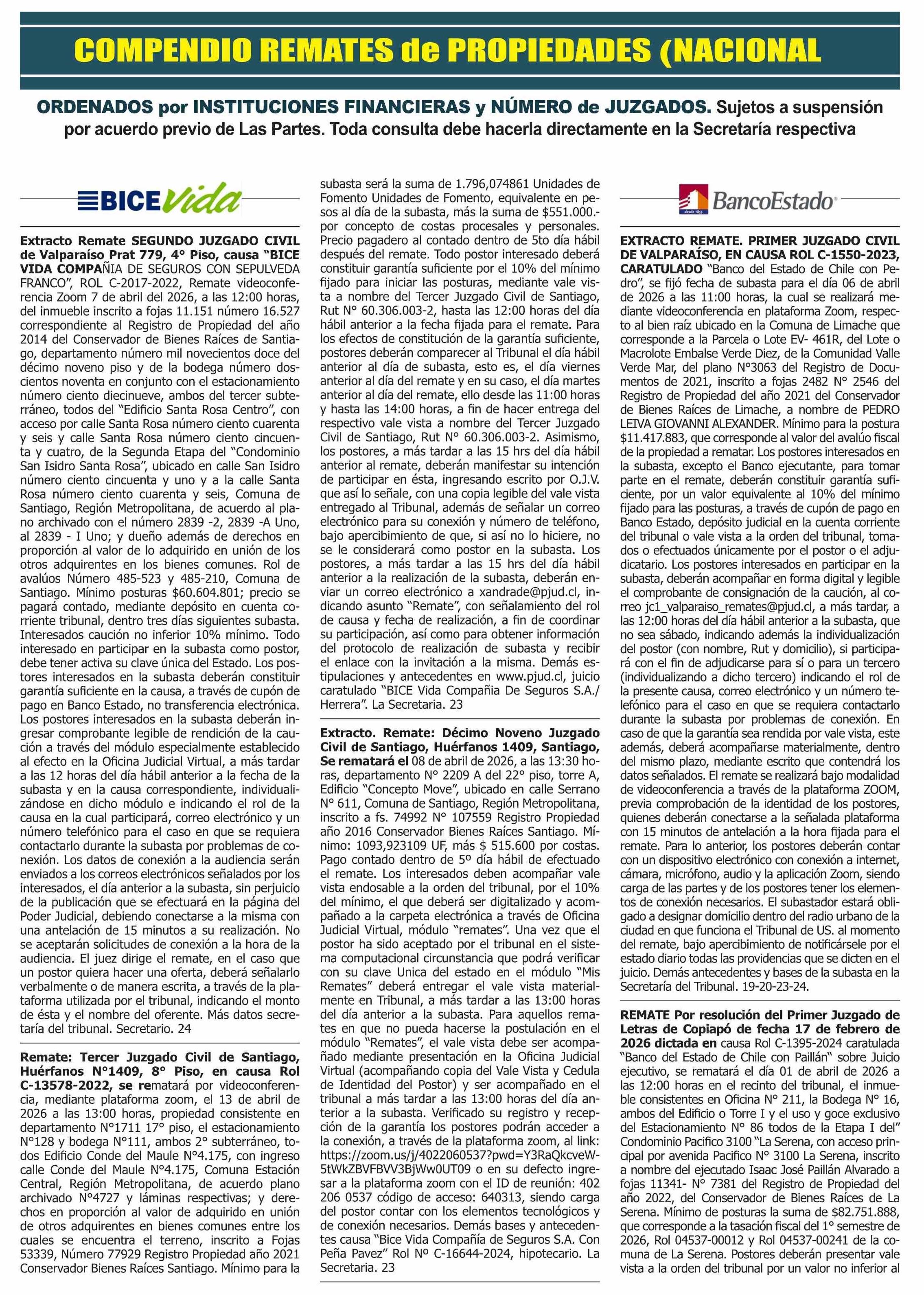 REMATES: COMPENDIO REMATES de PROPIEDADES (NACIONAL