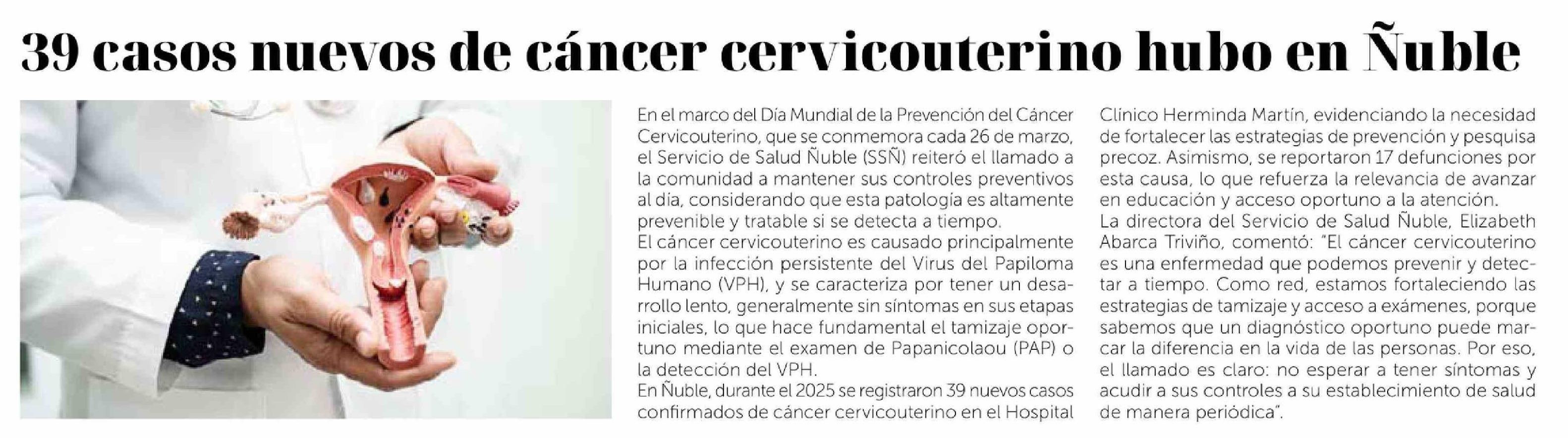 Título: 39 Casos nuevos de cáncer cervicouterino hubo en Ñuble