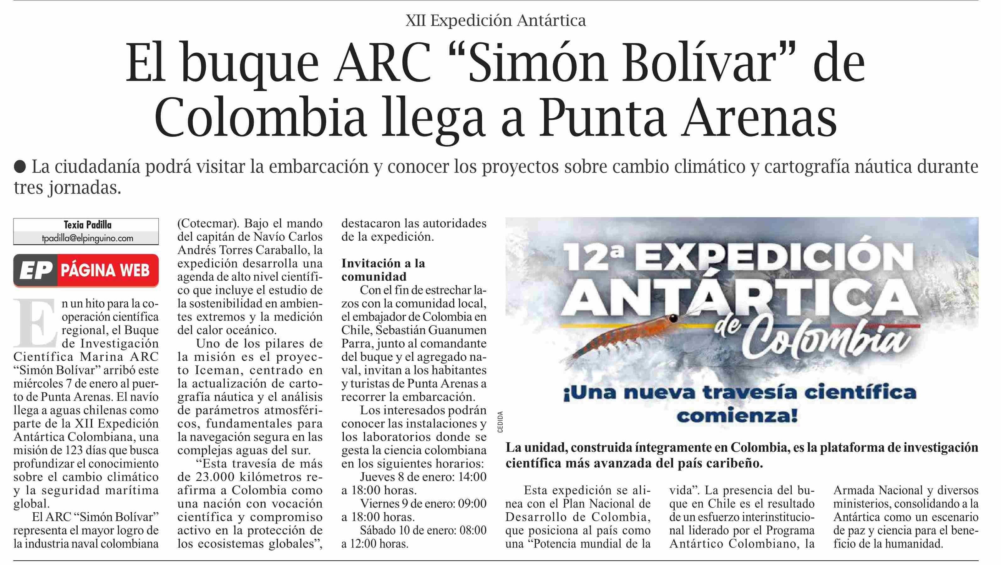 Título: El buque ARC "Simón Bolívar" de Colombia llega a Punta Arenas