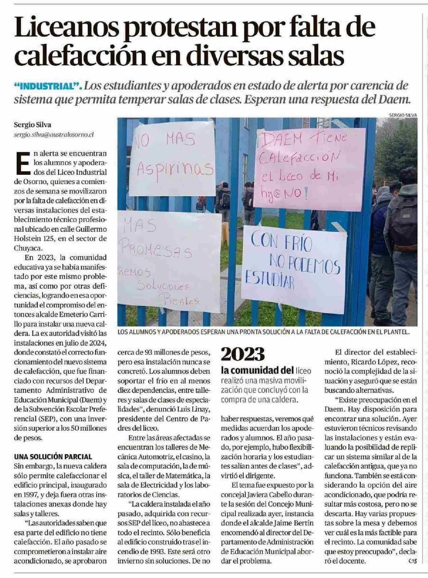 Liceanos protestan por falta de calefacción en diversas salas 11-06-2025 El Austral de Osorno |