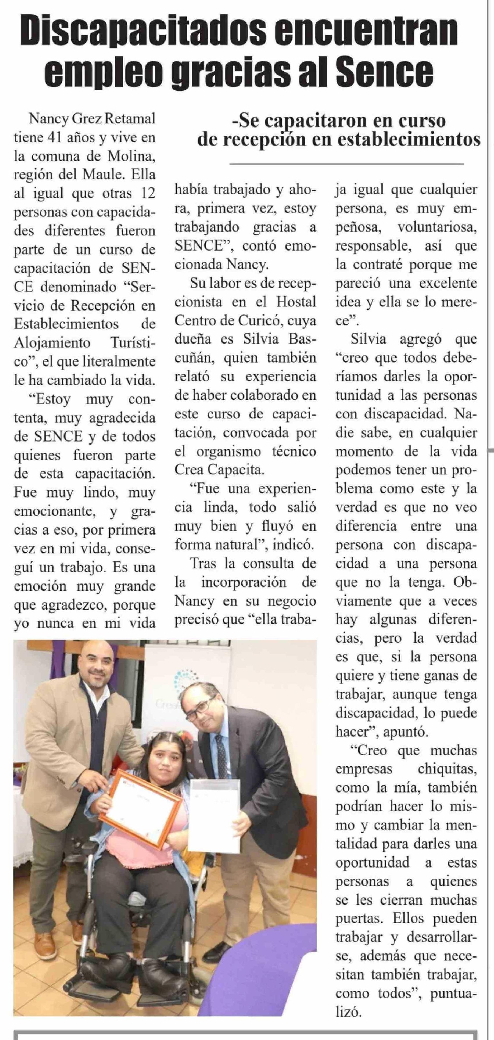 | Título: | Discapacitados encuentran empleo gracias al Sence |